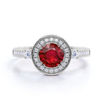 Channel Set Design 1.25 Carat Round Cut Lab Ruby and Diamond Engagement Ring in White Gold