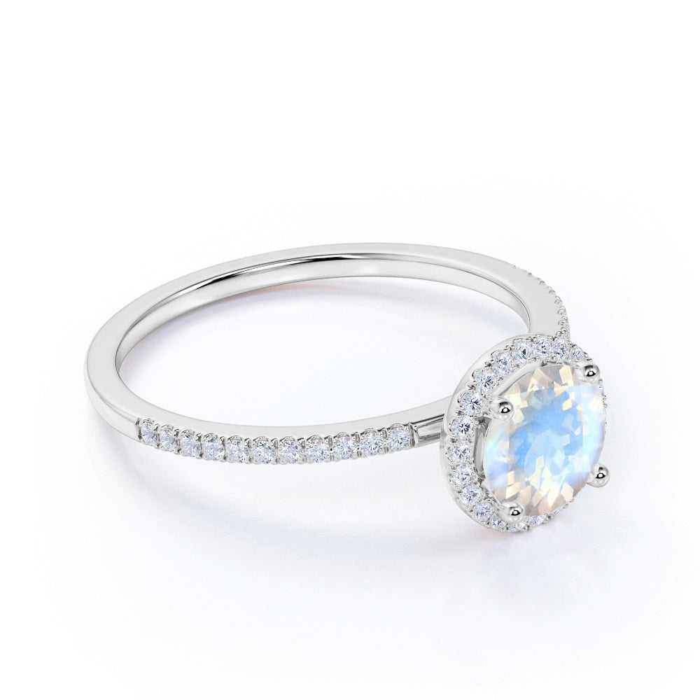 1.5 ct Round Blue Moonstone Halo Engagement Ring