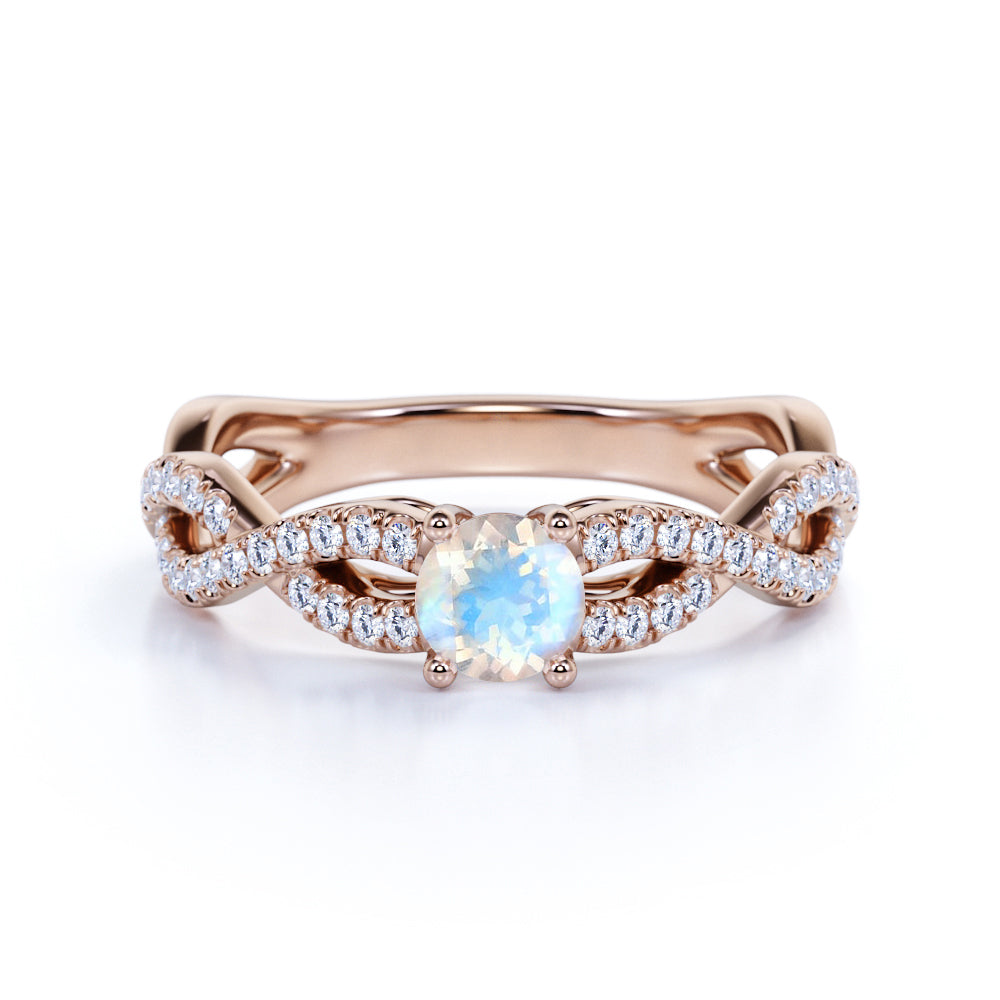 1.50 Carat Round Moonstone and Diamond Engagement Ring in Rose Gold - Moonstone Infinity Ring