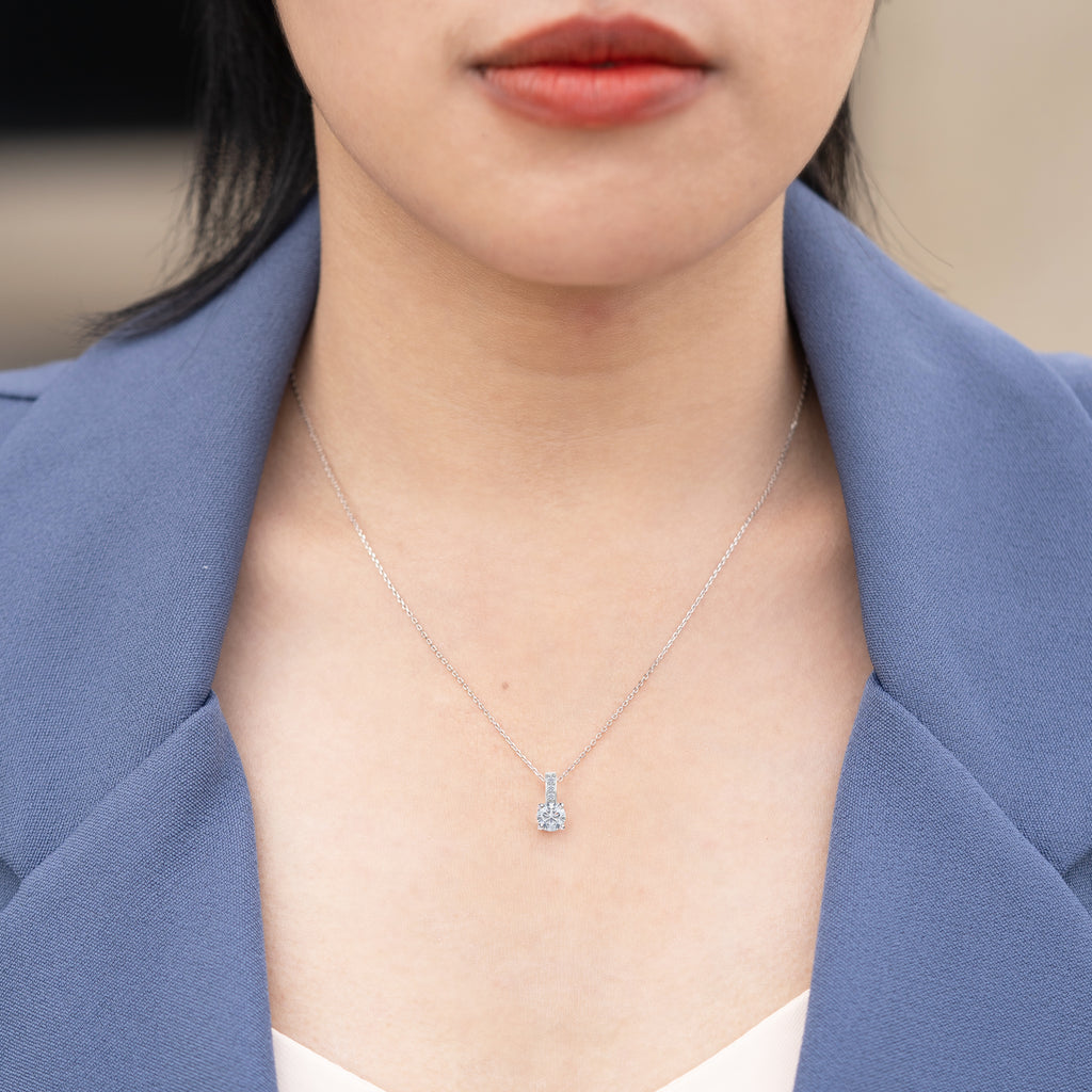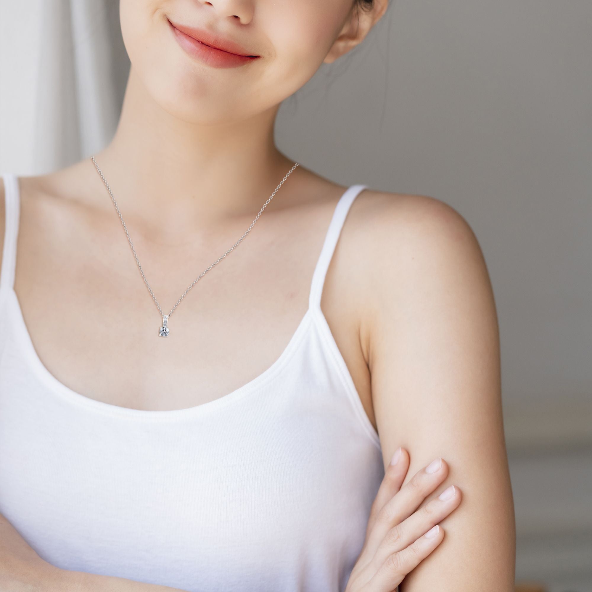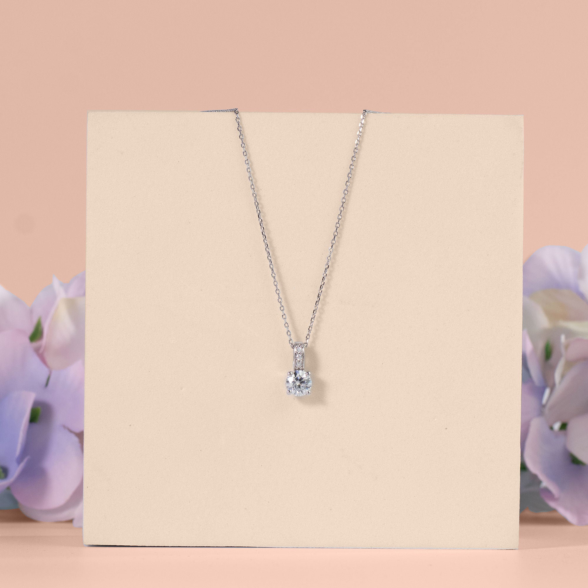 Charming 1 Carat Round Moissanite Pendant Necklace in 18K White Gold Plating over Silver