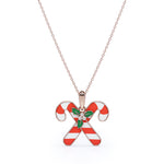 Christmas Candy Cane Diamond Enamel Pendant Necklace in 18K White Gold Plating over Silver