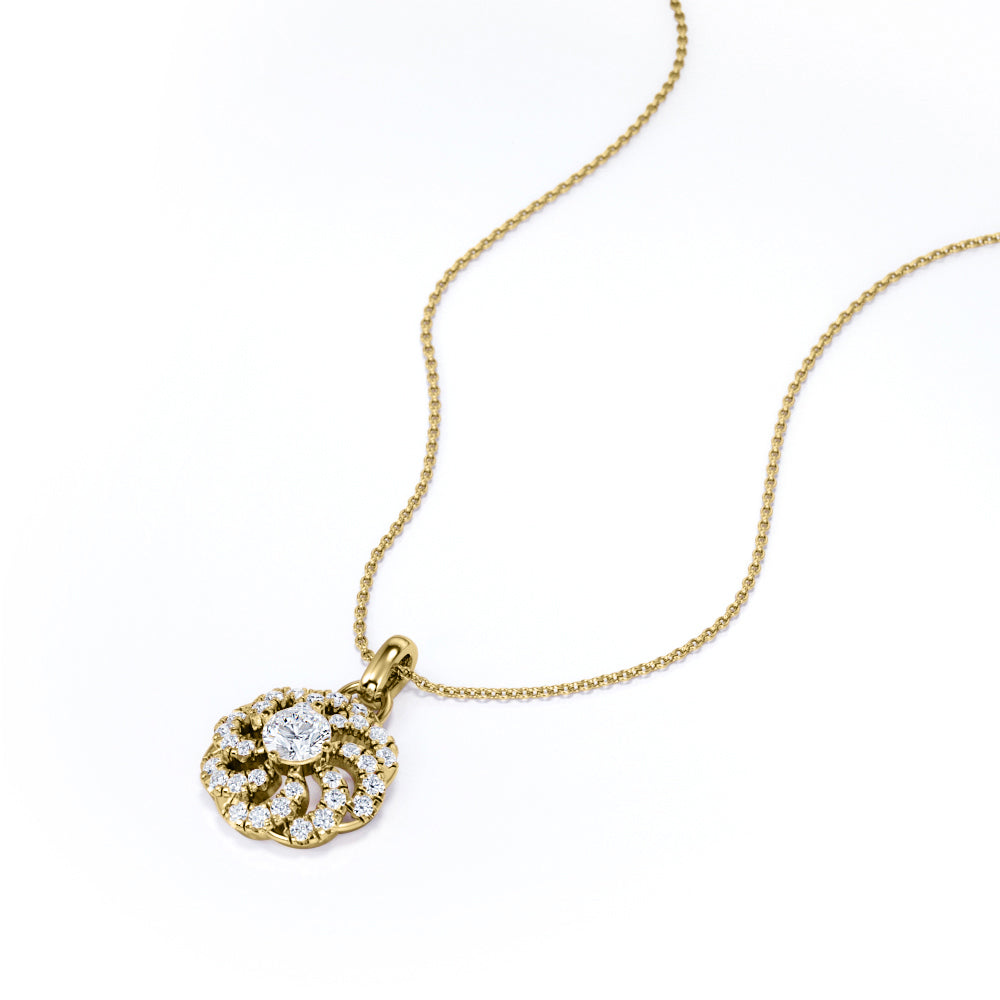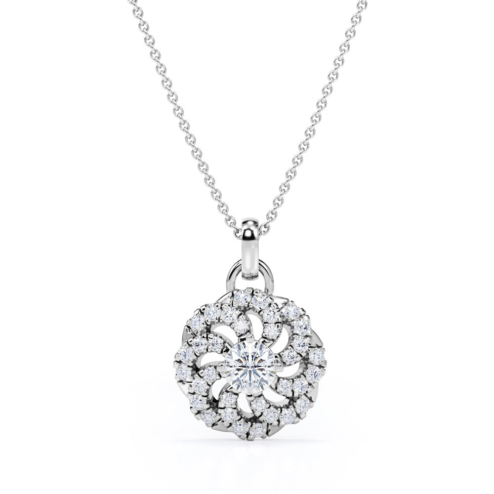 Circle of Life Prong Set 1.25 Carat Round Cut Certified Moissanite and Diamond Floating French Pave Pendant Necklace in White Gold