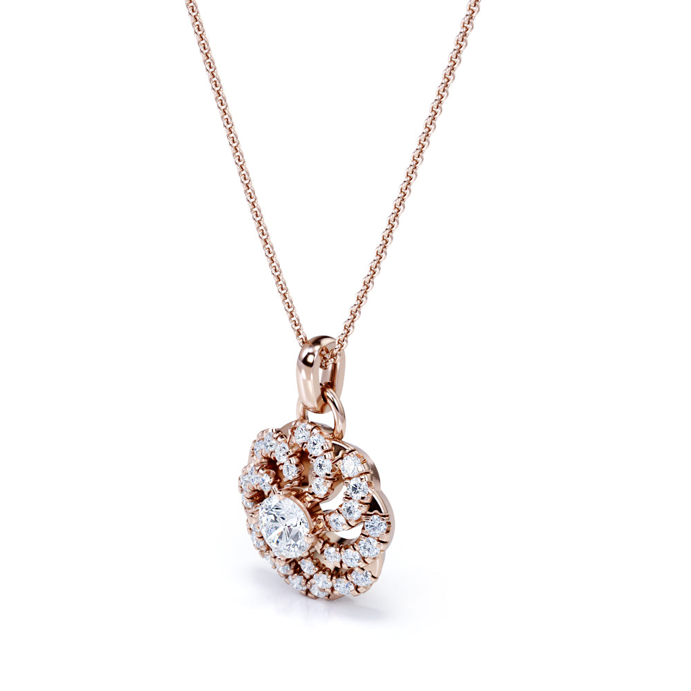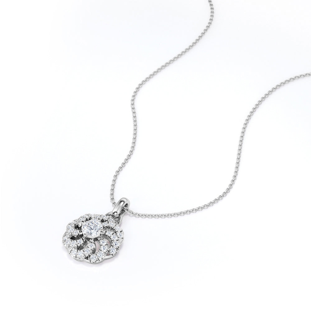Circle of Life Prong Set 1.25 Carat Round Cut Certified Moissanite and Diamond Floating French Pave Pendant Necklace in White Gold
