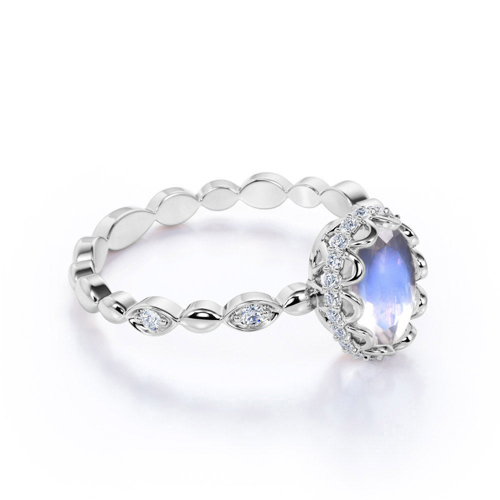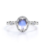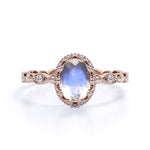 1.50 Carat Oval Moonstone Wedding Ring in Rose Gold - Blue Moonstone Ring