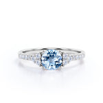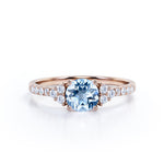 With its enchanting color and clarity, this Classic 1.50 Carat Round Cut Aqua Sky Blue Aquamarine and Diamond 7 Stone Cluster Engagement Ring in Rose Gold for Women will unquestionably be an essential additional to any jewelry collection. This timeless ring features 1 carat round cut real Aquamarine and .50 carat natural side Diamonds. This beautiful engagement ring can be customized to either 10k, 14K or 18K and either Black Gold, Rose Gold, White Gold or Yellow Gold. Also, as your satisfaction is our top priority, we will do our best to have your handmade jewelry be carefully and beautifully crafted by our expert jewelers. The order also comes with a 30-day full refund policy. Perfect for any occasion, this blue mineral beryl will be a special gift for your special person. It is crowned as a gem of the sea because of its sparkling ocean-like color. It has a very remarkably high clarity and transparency. It is beautiful and accessible since it is available at a reasonably price. With its dazzling sparkle, this ring is sure to make its wearer stand out from the rest. Perfect for everyday wear, this ring is durable and resistant to chemical attack. Precisely handcrafted, this ring is a perfect additional to any jewelry box. This ring will thoroughly elaborate your charming love story and bring in happiness. Its variety of colors can match all of people's preferences. Let’s impress her with this ring and she will be eternally joyful.