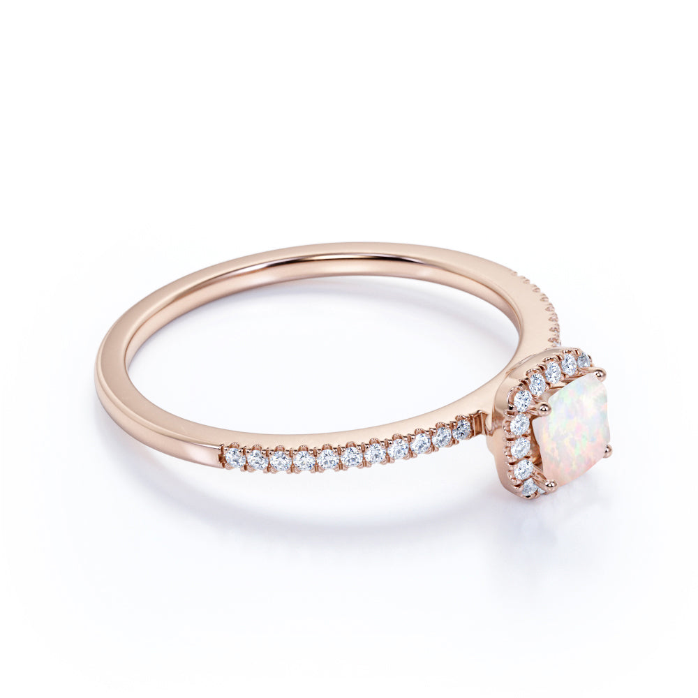 • Lastly, this opal engagement ring can be a great addition to your personalized jewelry box, we can also customized these following ring designs, a faceted ring, October birthstone ring, cabochon ring, leaf band, blue opal jewelry, rhombus ring or a ranch ring style.
