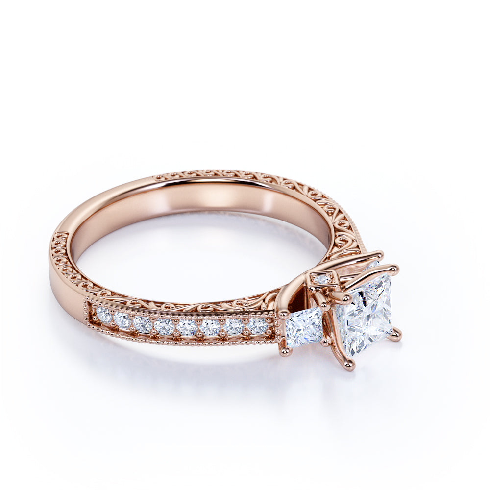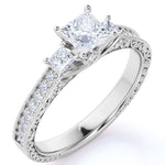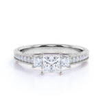 1 ct Princess Cut Moissanite Three Stone Engagement Ring