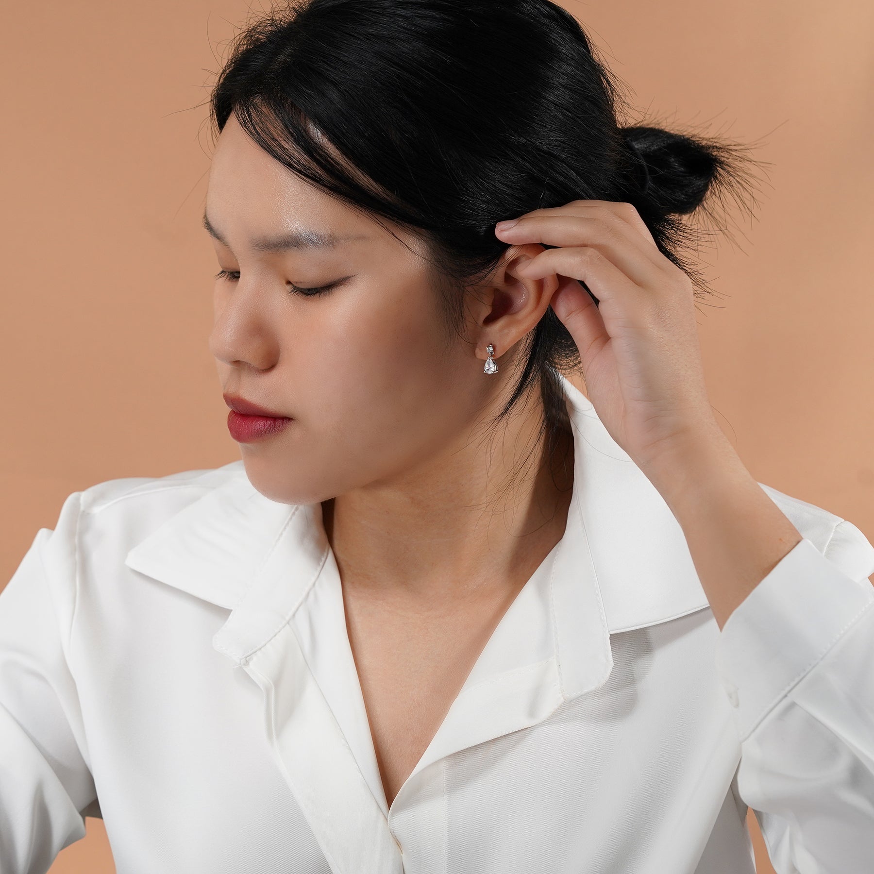 Be highly fashionable with this Classic 2.5 Carat Round and Pear Cut Dangle Moissanite Earrings in Silver. Daretinctive and extraordinary, these dangle earrings are well-suited for those who are not quite into normal lifestyle. With their glory and clarity, these earrings will absolutely enhance every style of their wearer. Let’s impress her with these earrings, and she will be eternally joyful.