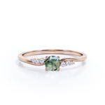 7 Stone 0.55 Carat Round Moss Agate Engagement Ring