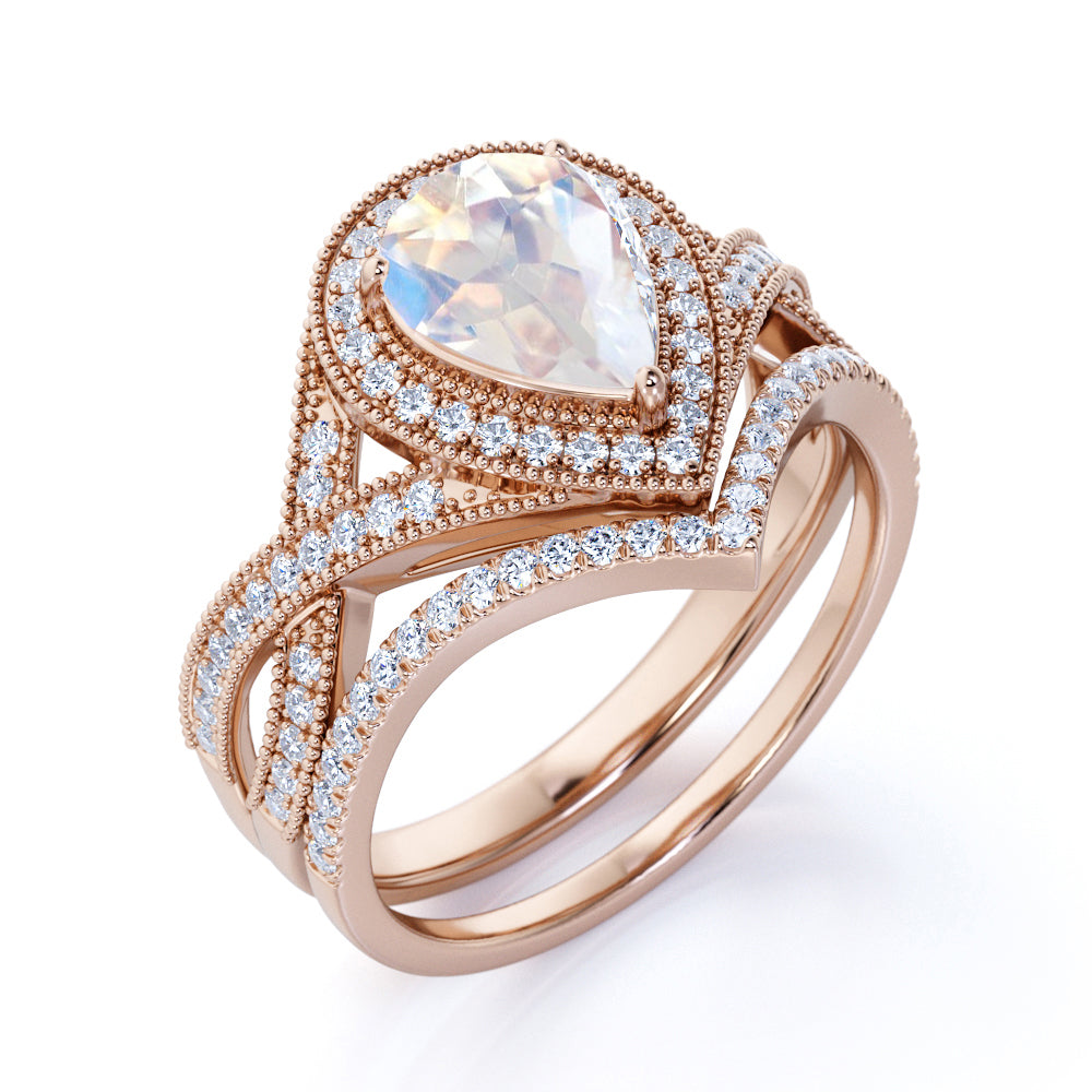 1.5 ct Pear Rainbow Moonstone Infinity Wedding Set
