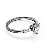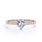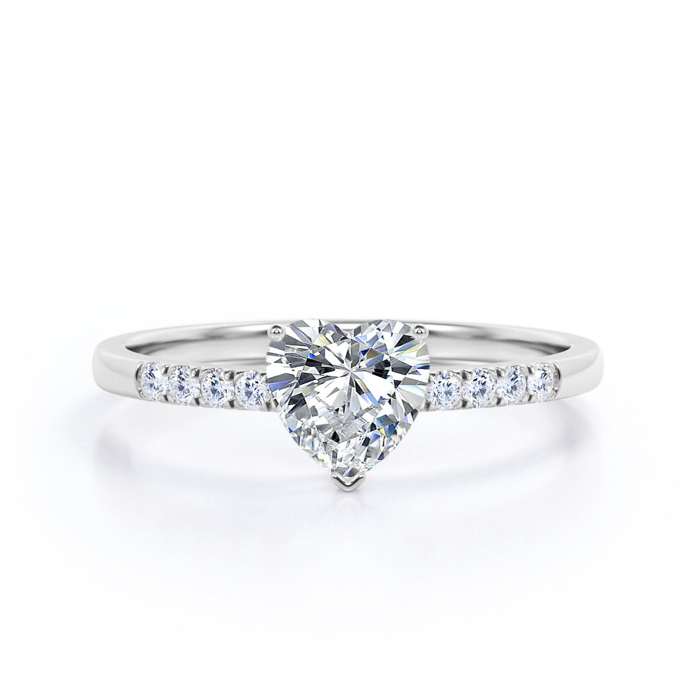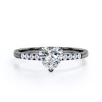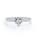 Classic Dainty Band 0.55 carat Heart Moissanite and Diamond Engagement Ring in White Gold