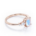 Classic Five Stone 0.6 carat Oval Moonstone and Diamond Engagement Ring in Rose Gold