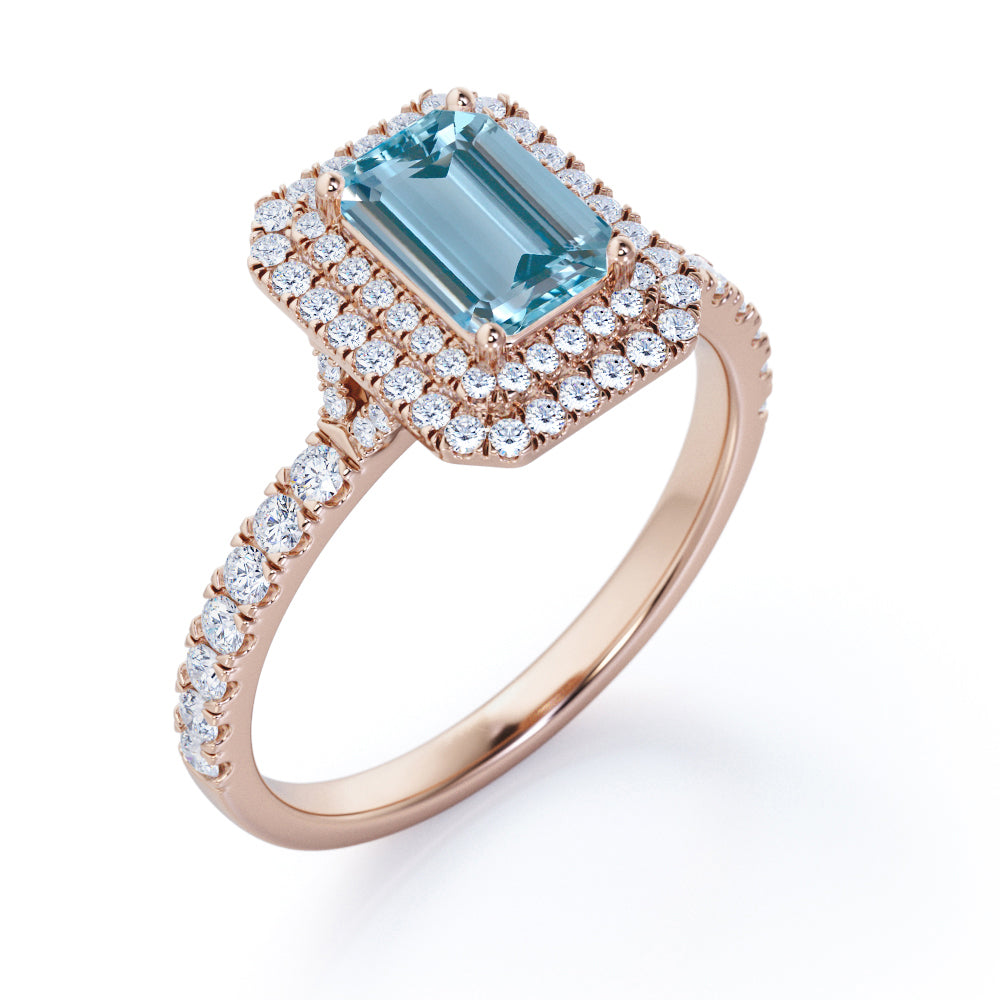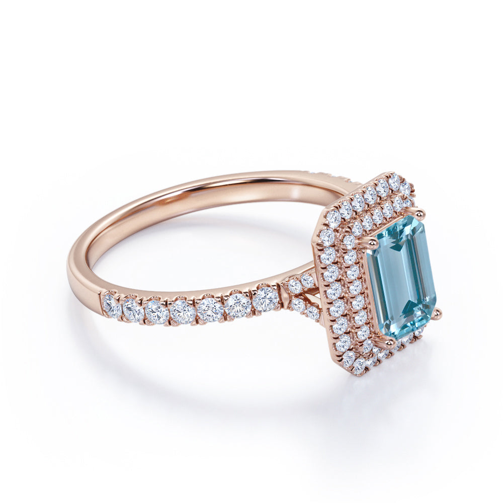 Double Halo 1.75 ct Emerald Aquamarine Engagement Ring