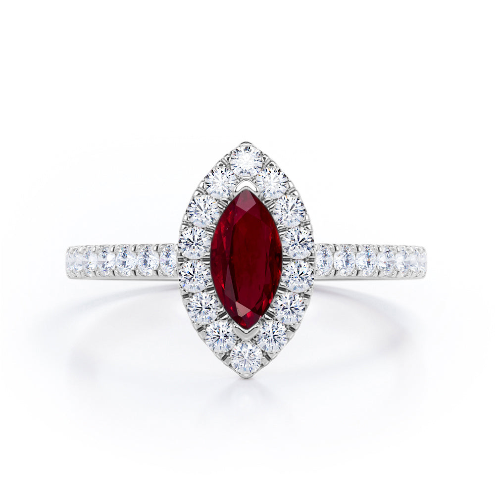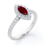 Classic Marquise 1 carat Marquise Lab Ruby and Diamonds Engagement Ring in White Gold