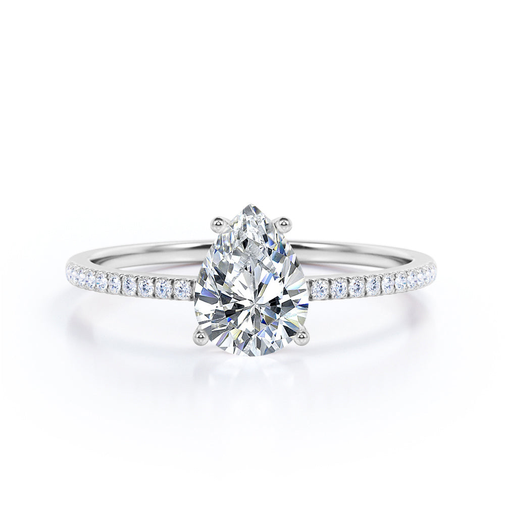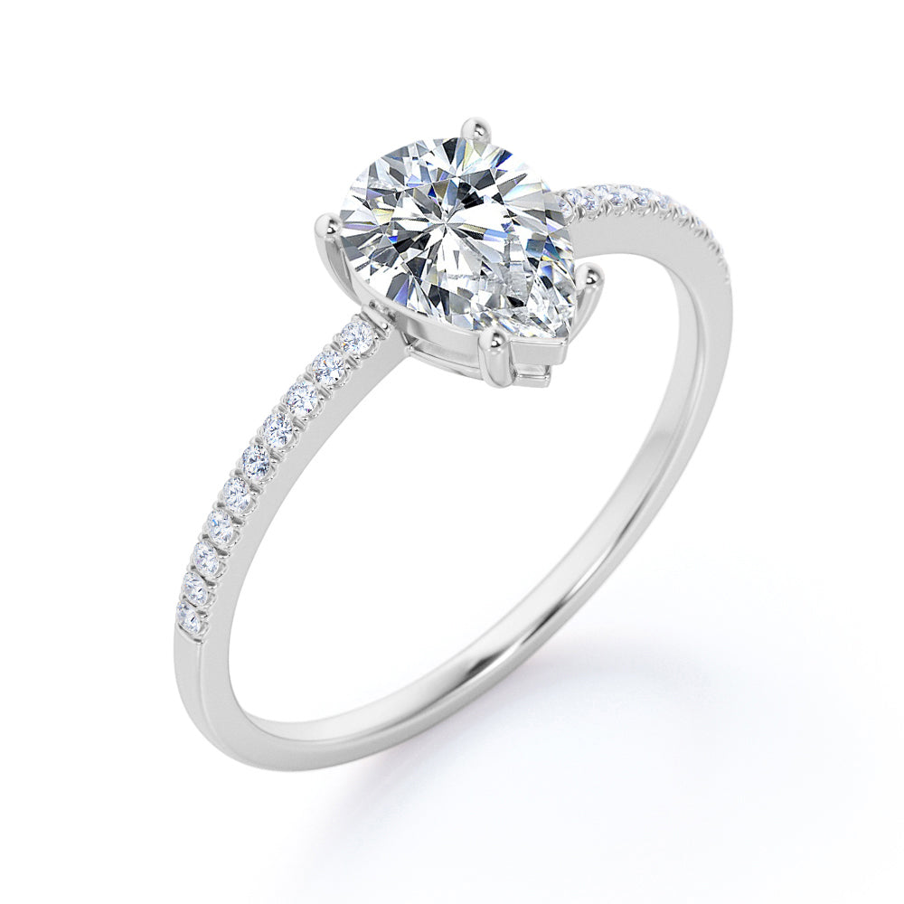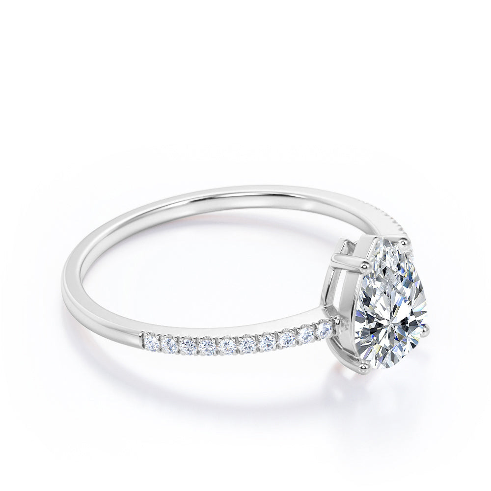 Classic Pave 0.7 carat Pear Moissanite and diamond Engagement Ring in White Gold
