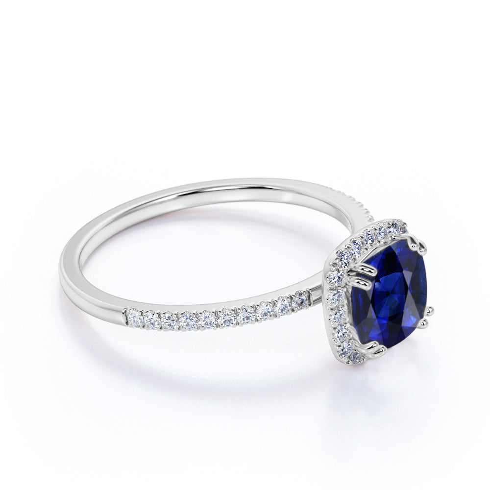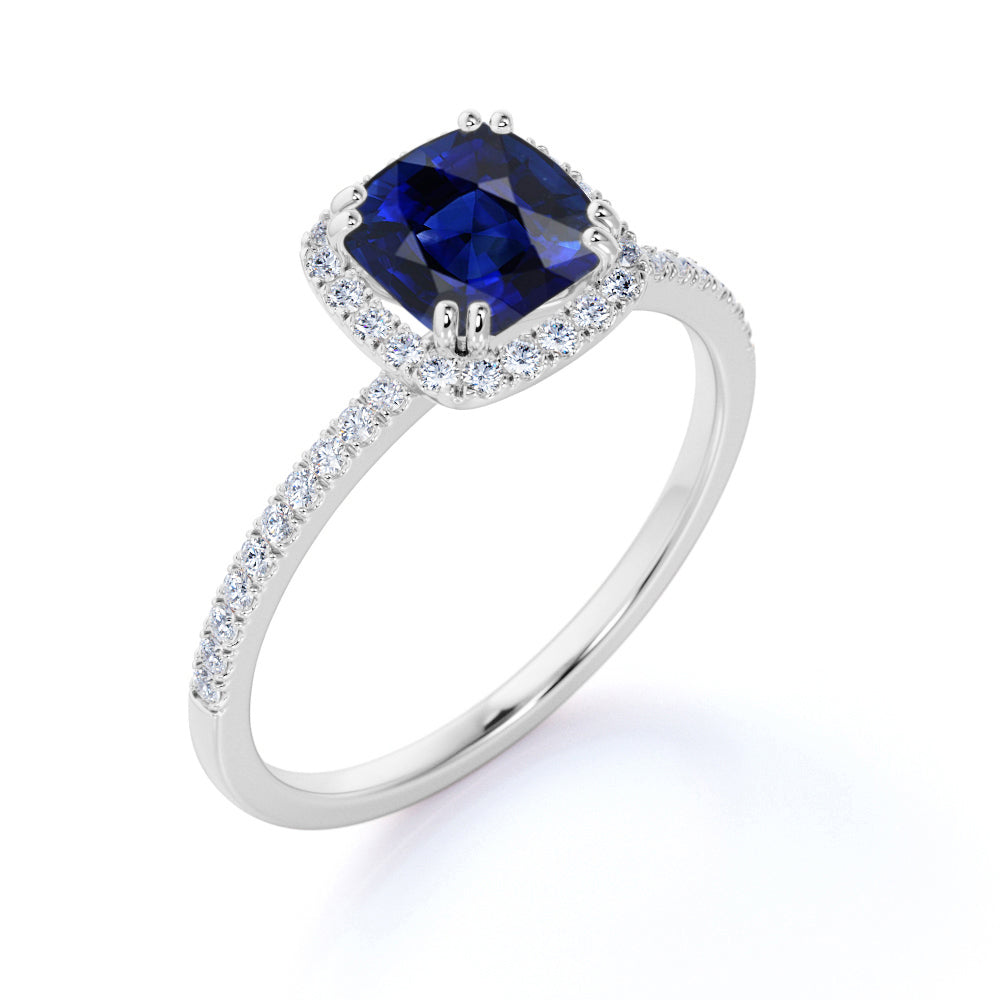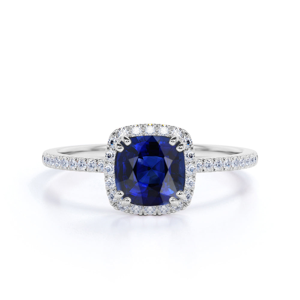 Halo 1.50 Ct Cushion Cut Lab Sapphire Engagement Ring