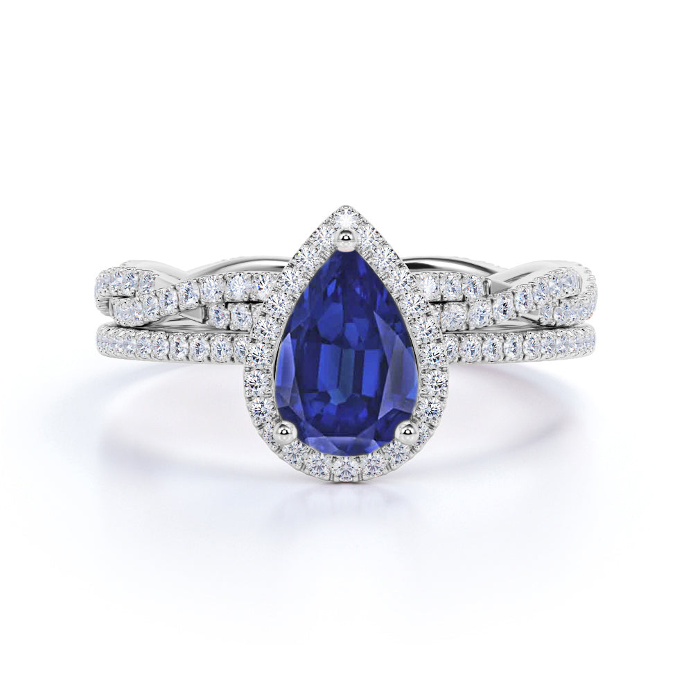 1.85 Ct Pear Cut Lab Sapphire Infinity Bridal Set