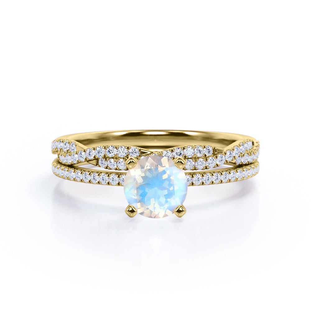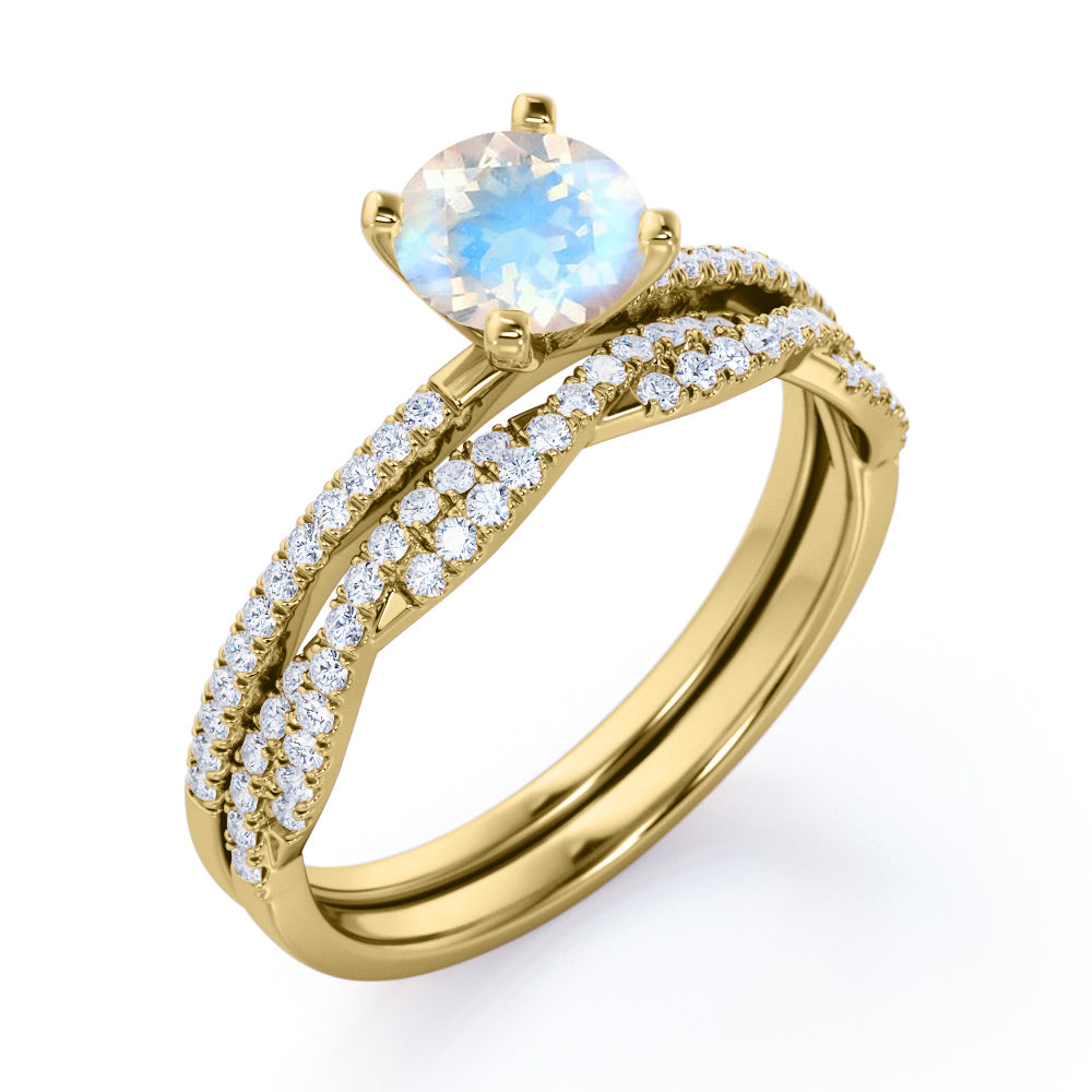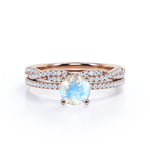 Classic Pave Round 1 carat Round Moonstone and Moissanite Wedding Ring Set in White Gold