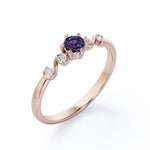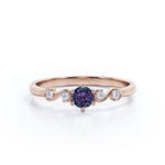 Classic Six Prong 1.10 Carat Round Cut Lab Created Alexandrite And Diamond Five Stone Engagement Ring In White Gold.
