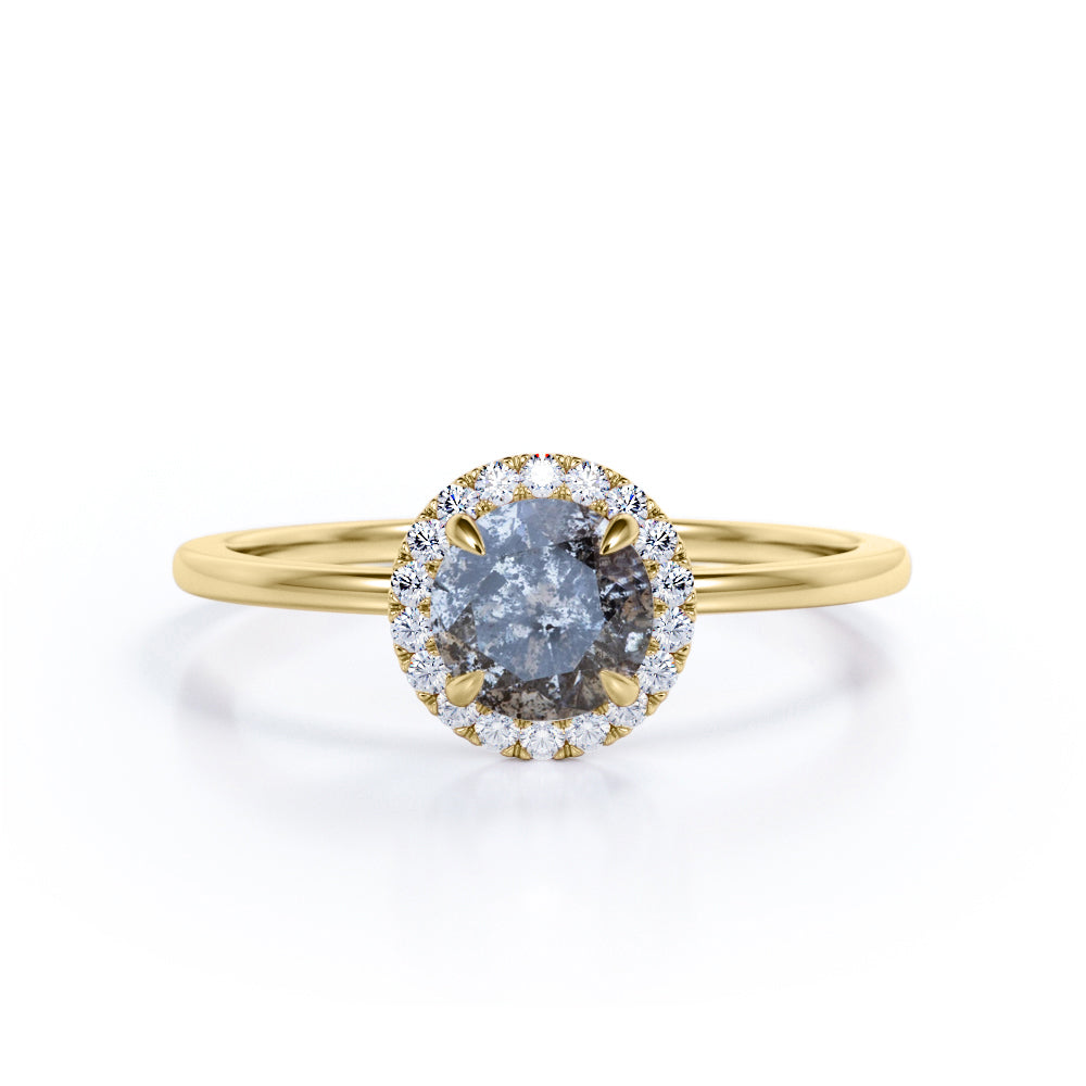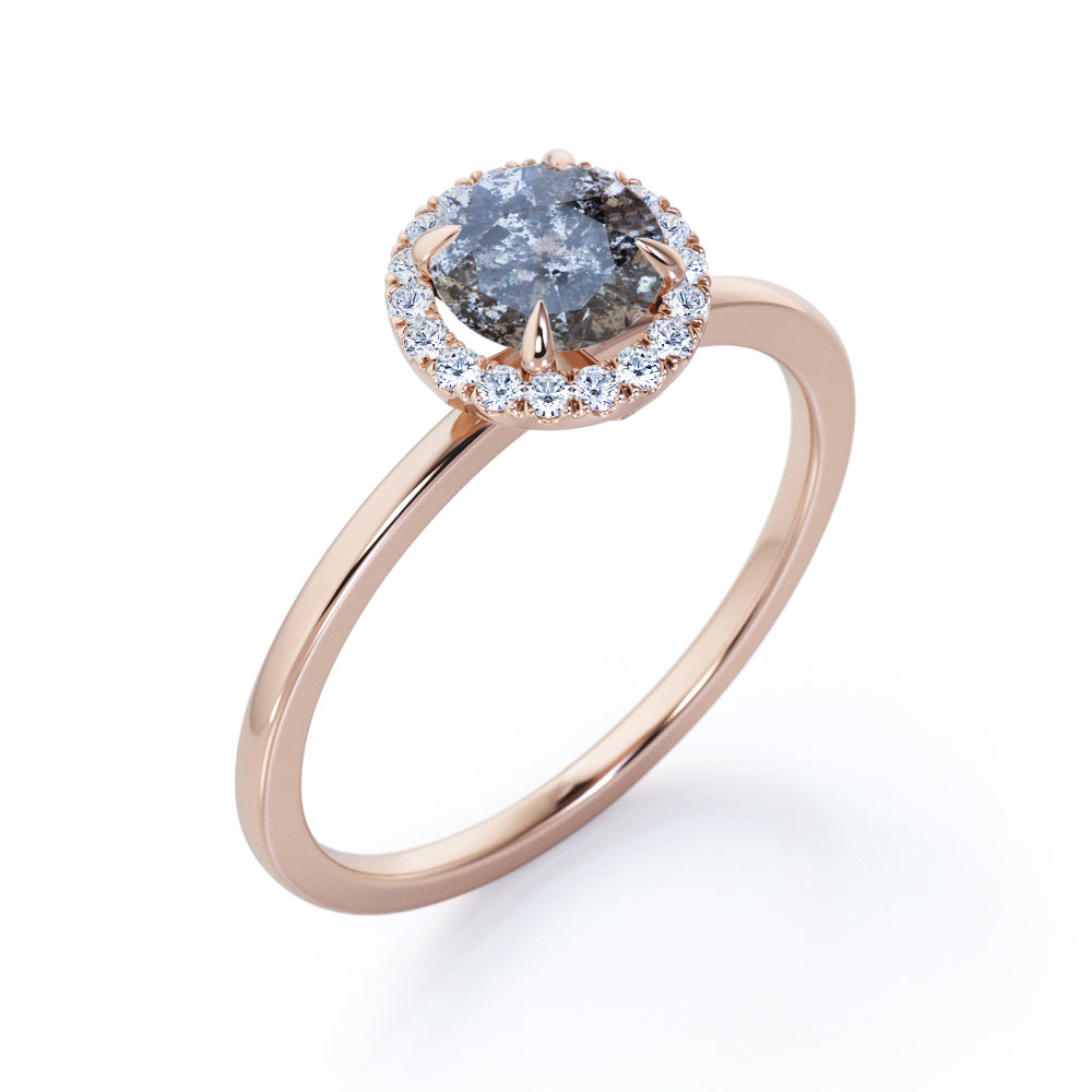 Solitaire 0.75 Ct Round Salt and Pepper Diamond Engagement Ring
