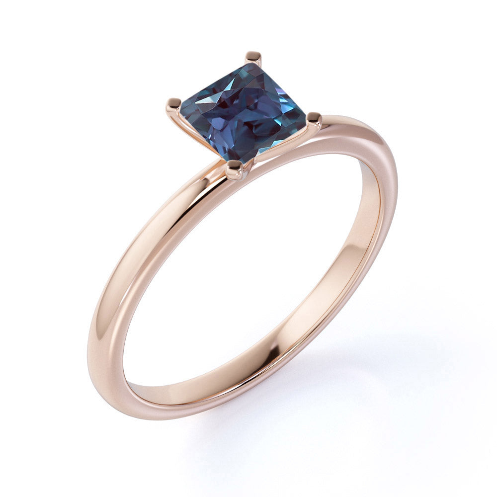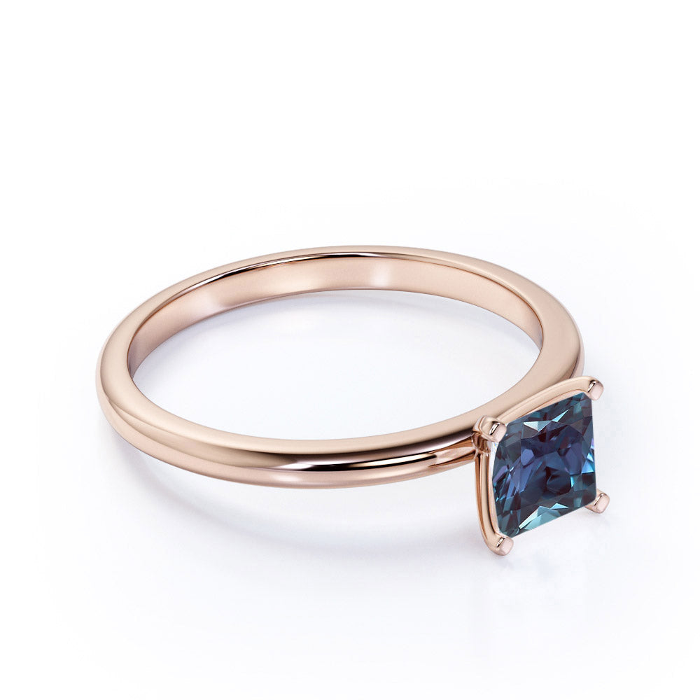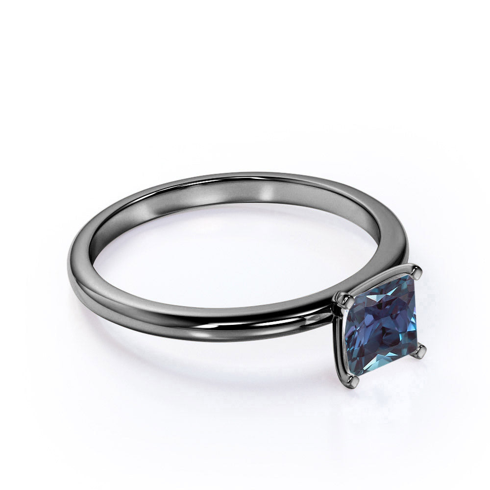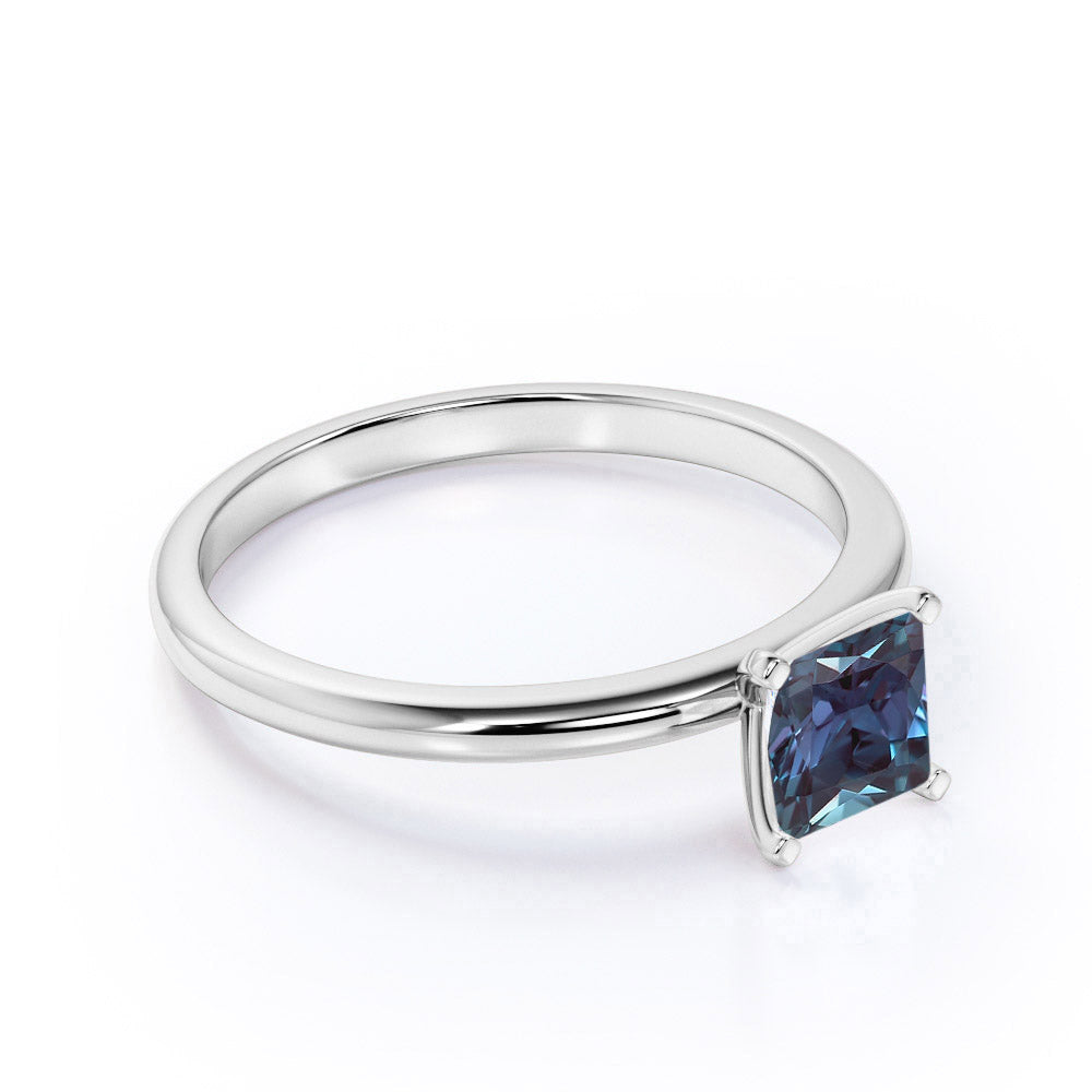 Classic Solitaire 1 Carat Princess Cut Lab Made Alexandrite Plain Shank Promise Ring - Engagement Ring for Women
