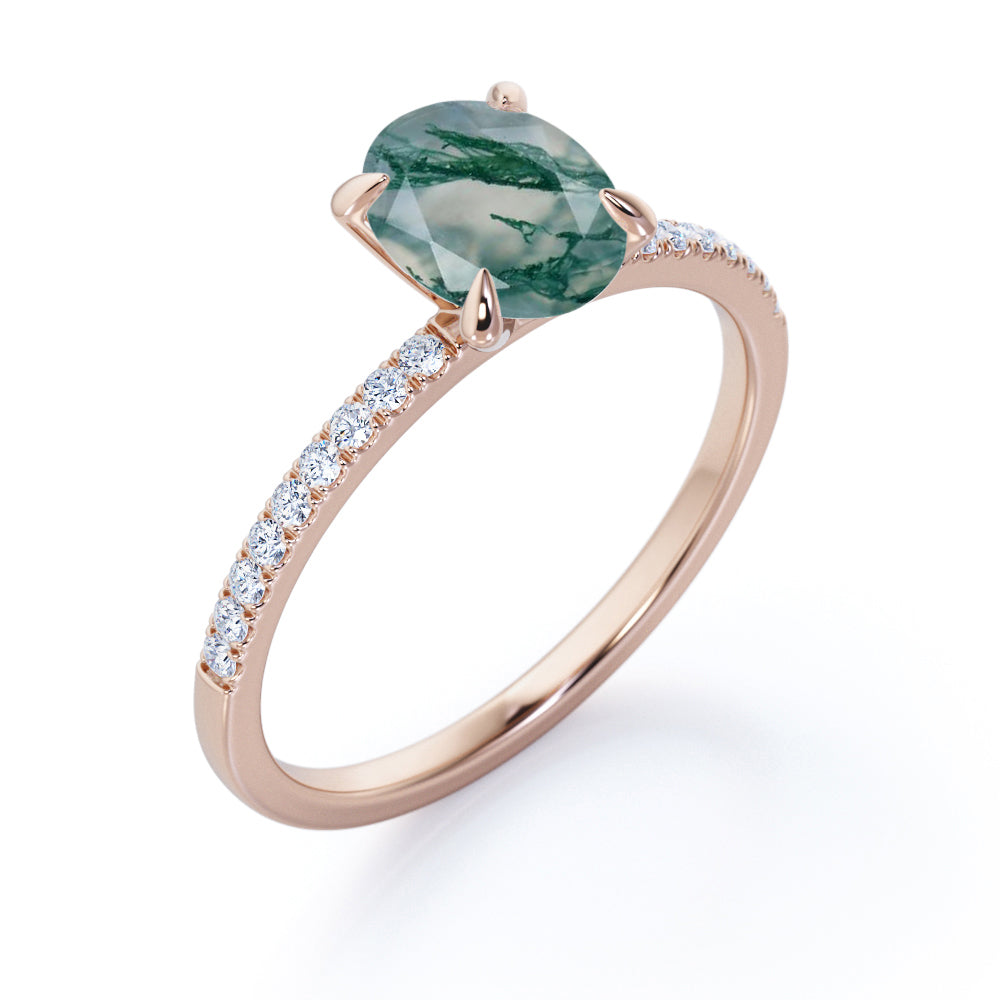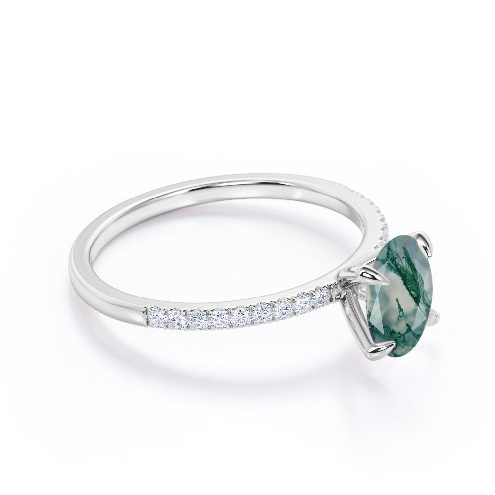 1.25 ct Oval Cut Green Moss AgatePave Engagement Ring