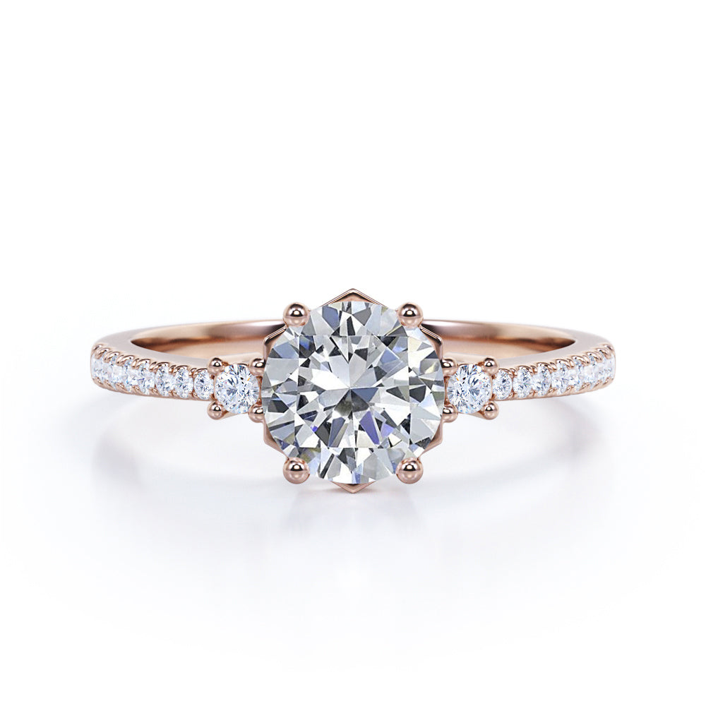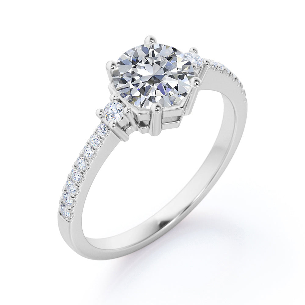 Tapered 1.20 Carat Round Moissanite Engagement Ring