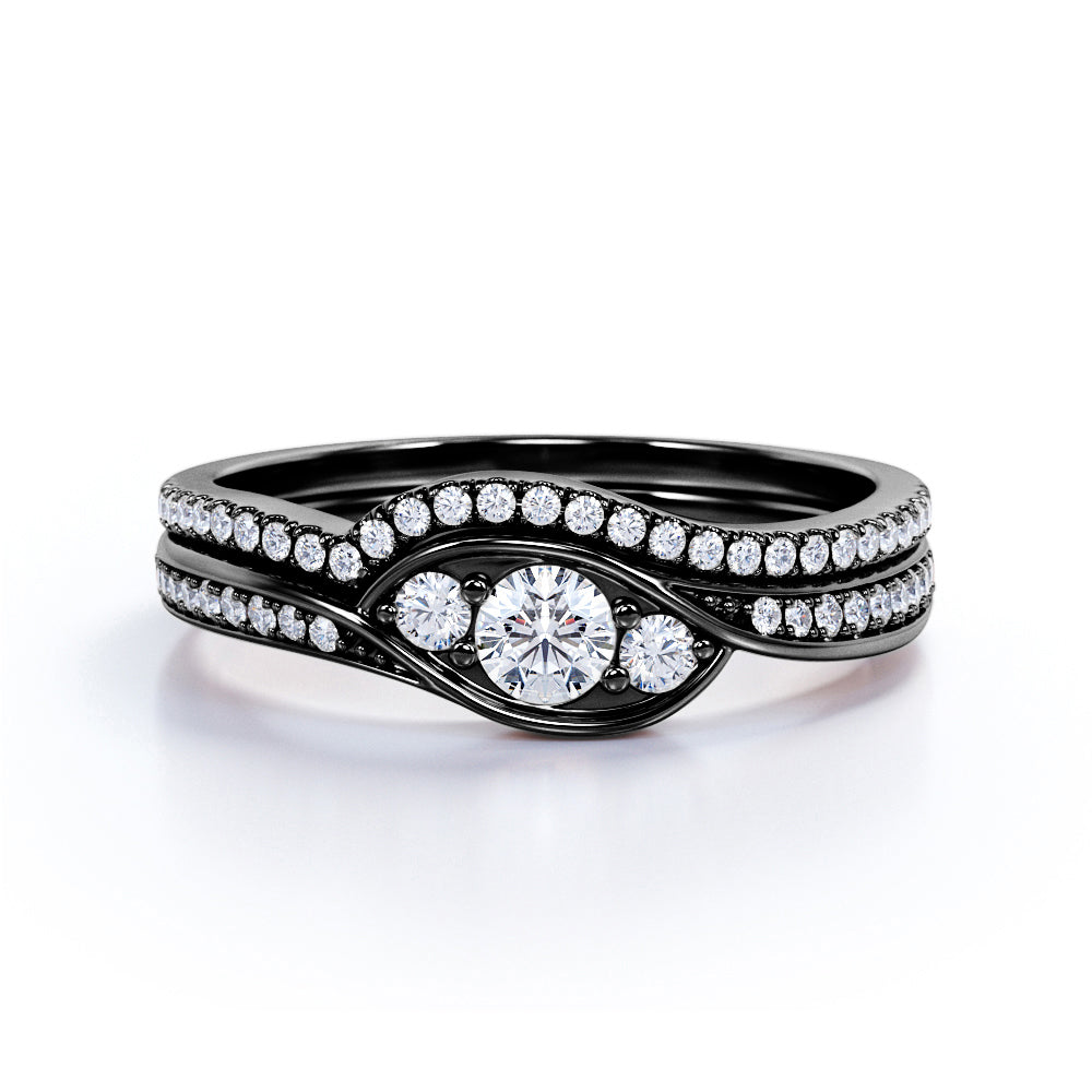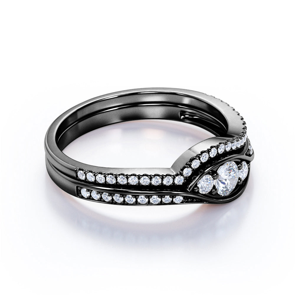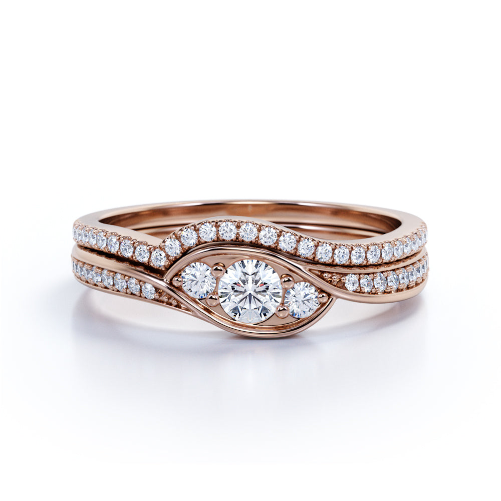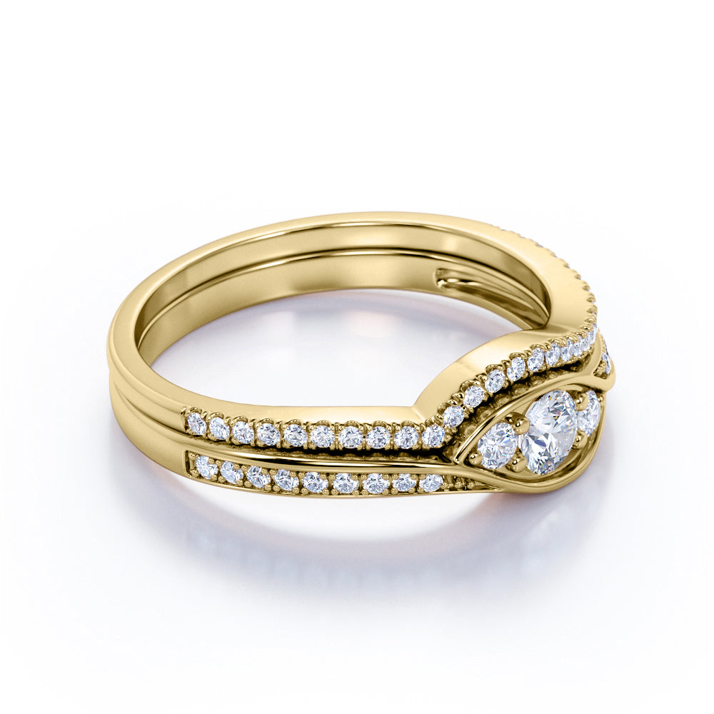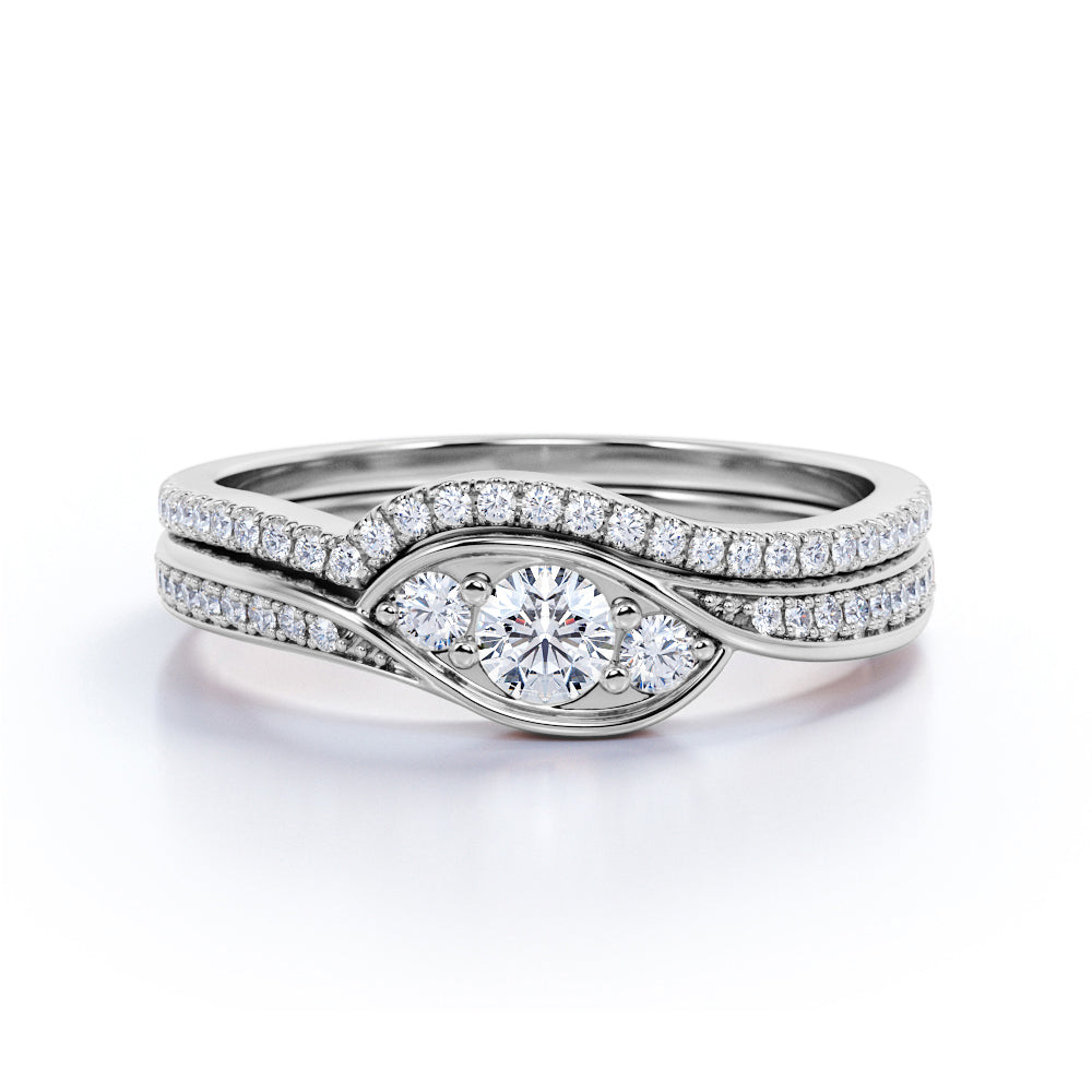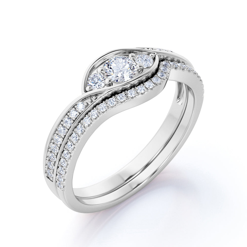 Swirl Trilogy 1.5 CT TDW Round Cut Diamond Channel Setting Wedding Set - Bridal Set