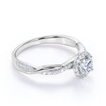 Experience the brilliance of the Clustered Halo 1.5 CT Certified Lab Grown Diamond Round Cut Infinity Engagement Ring in White Gold. The ring features a stunning 1 carat round cut certified lab-grown diamond at its center, surrounded by a halo of 0.5 carat of additional natural diamonds, creating a dazzling cluster effect. The infinity design symbolizes eternal love and adds a touch of elegance to this timeless piece. Crafted in white gold, this ring can be customized in Silver, 10k, 14k, or 18k gold with options available in white, rose, yellow, or black gold to match your unique style. Enjoy our 30-day full refund policy for peace of mind, and take advantage of the complimentary 30-day resizing service to ensure a perfect fit. Additionally, a 6-month limited warranty guarantees the ring's enduring beauty and quality. This engagement ring combines classic charm with modern sophistication, making it a perfect symbol of your everlasting commitment.