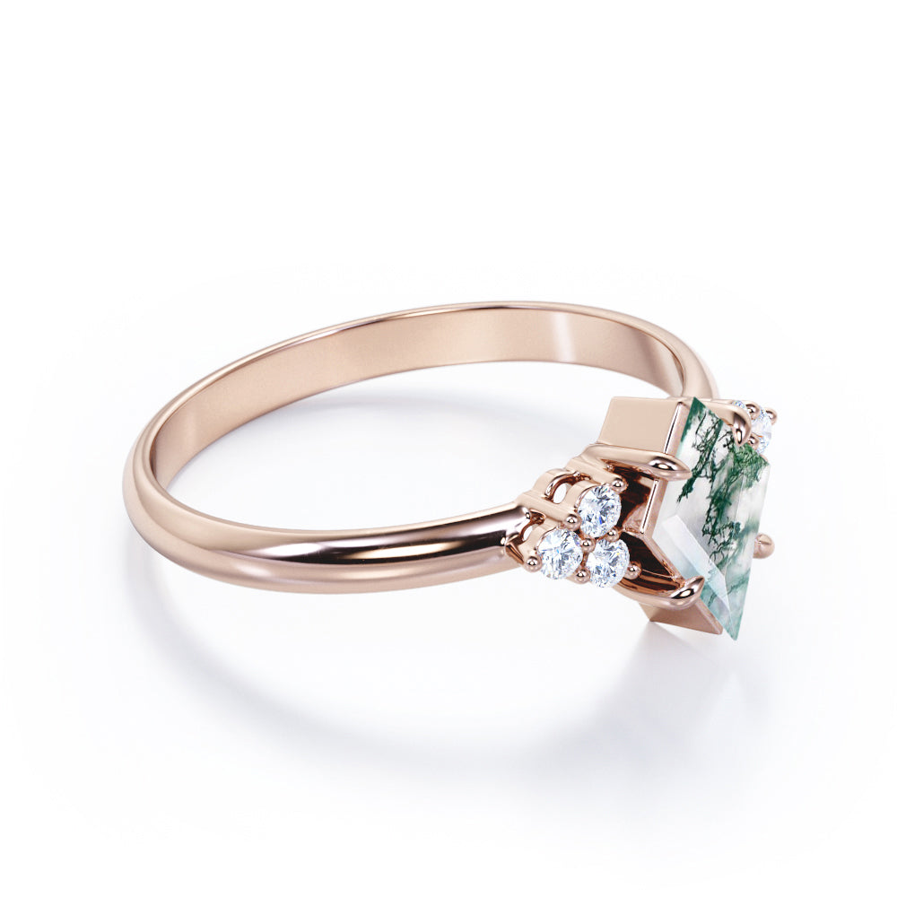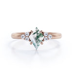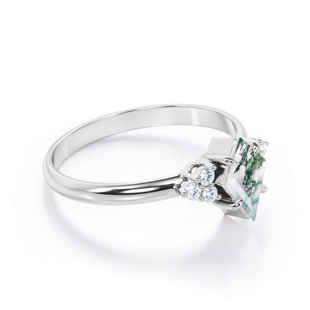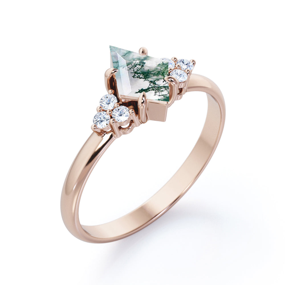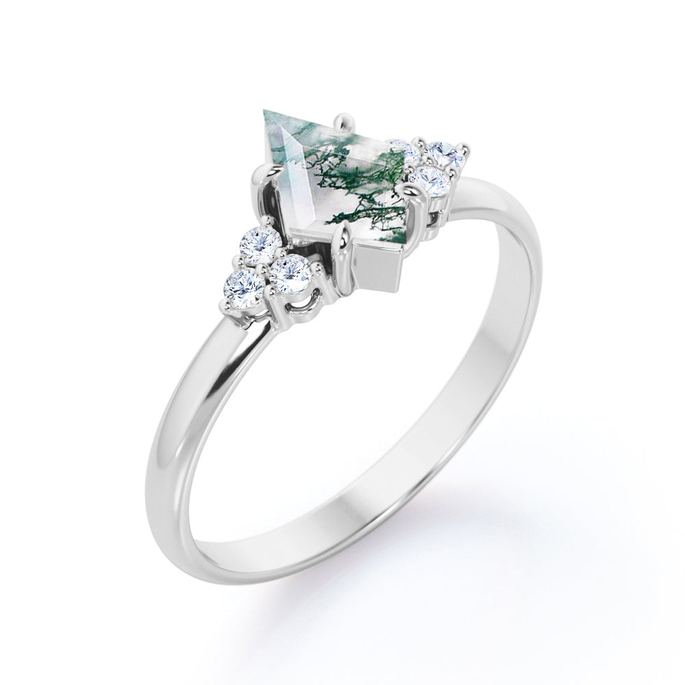 Clustered Triangle 1 Ct Kite Moss Agate Engagement Ring