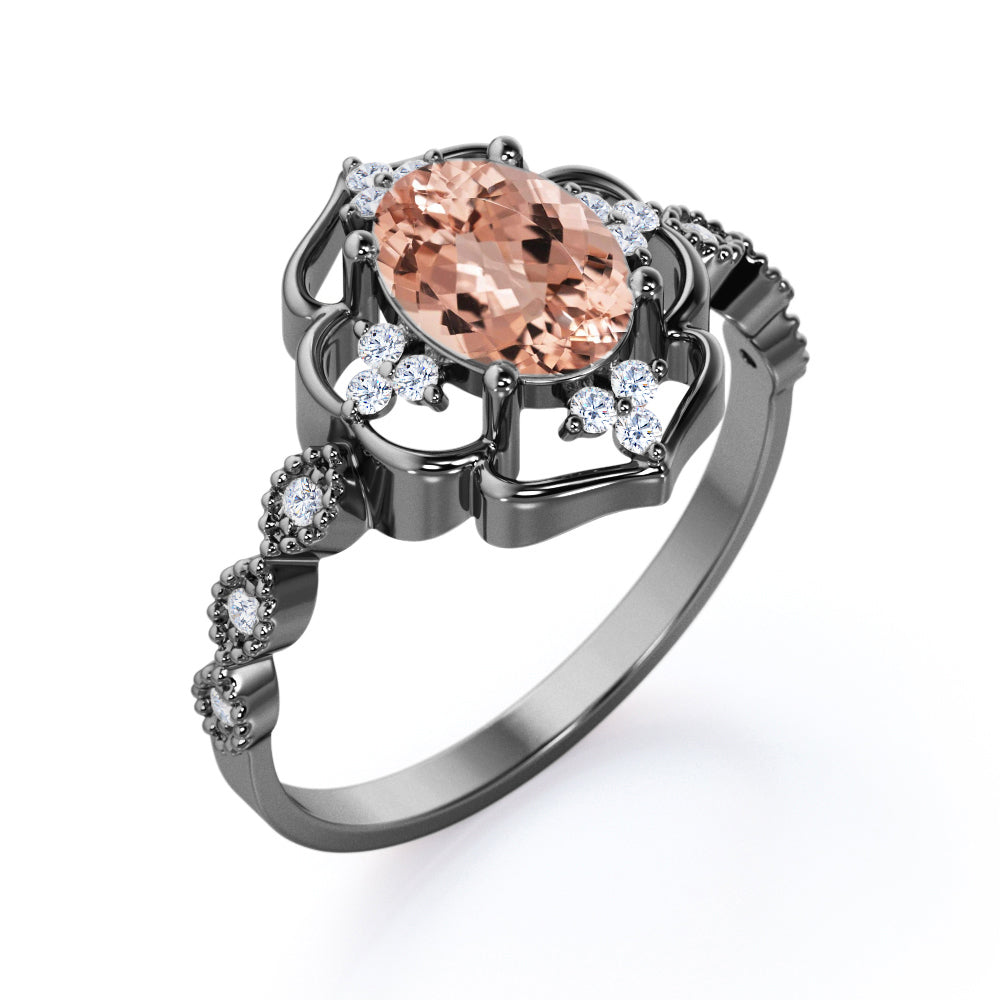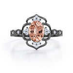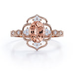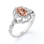 Colossal Flower 0.65 carat Oval Morganite and Moissanite Decorative Halo Engagement Ring in White Gold