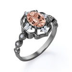 Add some vintage to her total look with a Colossal Flower 0.65 carat Oval Morganite and Moissanite Decorative Halo Engagement Ring in White Gold. This promise ring possesses a 0.5 carat oval Morganite in the middle of floral halo. Three dainty round Moissanite are encased by each petal to add more glitter to the center piece. The band is made in marquise shape and each one frames a round petite Moissanite. Add the finishing touch the antique ring by employ Milgrain to the band. It can be made in 18k gold over silver, 10k gold and 14k gold with the color of white gold, rose gold and black gold.