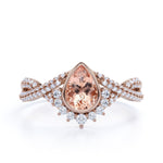 Contour 1.75 Carat Teardrop Pink Peach Morganite and Diamond Antique Infinity Engagement Ring in Rose Gold