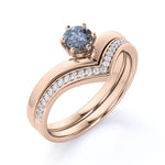 IMPORTANT NOTE: Since each Salt and Pepper Diamonds is one of a kind, the actual color of it may vary from the one that is pictured above. Handcrafted with love, this Contour Solitaire .75 Carat Round Cut Natural Icy Grey Salt and Pepper Diamond with Curved Pave Band Wedding Set Rings will surely be as unique as you are. This curve design Salt and Pepper Diamond ring features .50 carat round cut natural Salt and Pepper Diamond and .25 carat real side Diamond for gold ring and Moissanite for silver ring. This simple bridal set rings can be customized to either 10k, 14K and Gold over Silver and either Black Gold, Rose Gold, White Gold or Yellow Gold. Also, as your satisfaction is our most priority, we will do our best to have your handmade jewelry be carefully and beautifully crafted by our expert jewelers. The order also comes with a 30-day full refund policy. Ideal gift for any special occasion, this ring can be gifted on birthday, anniversary, Valentine's day, Christmas, and proposal. This ring is very exclusive due to the unique inclusions of Salt and Pepper Diamond that appears black and white. Ornament and distinguish your love story with the neat distribution of black and white inclusions of Salt and Pepper Diamond. It provides an ideal way to stand out from crowd with a gorgeous and distinctive ring. Being considered a very eccentric gemstone, this ring will create a timeless and fabulous engagement ring. With its especial color ranging from silky grays to stormy almost blacks, no two Salt and Pepper Diamond rings are alike. Those who has a penchant for vintage and flawless ring would completely fall in love with this affordable ring. If you are in search of a unique gift for any occasion, this stunning Salt and Pepper Diamond ring is the best answer for you. It is the perfect match for those who are looking for a remarkable gemstone rings as Salt and Pepper embodies their own unique combination of color and uplifting meaning.
