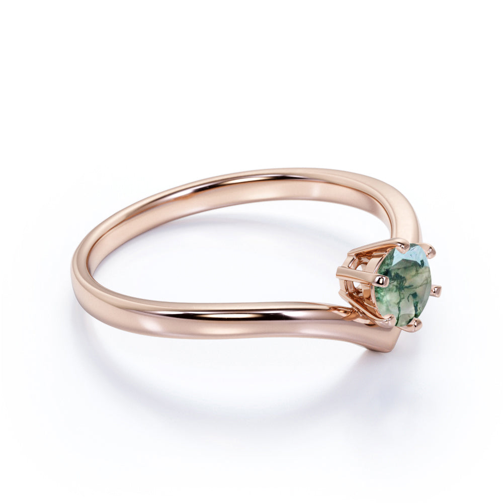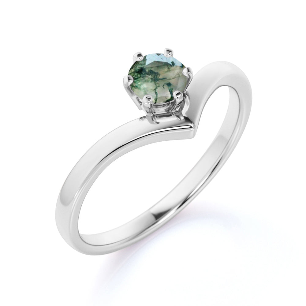 Contour Solitaire 1.25 Carat Round Cut Solid Dendritic Mossy Green Agate Classic Engagement Ring