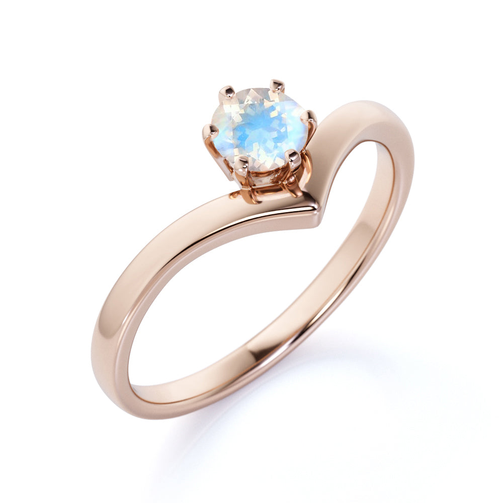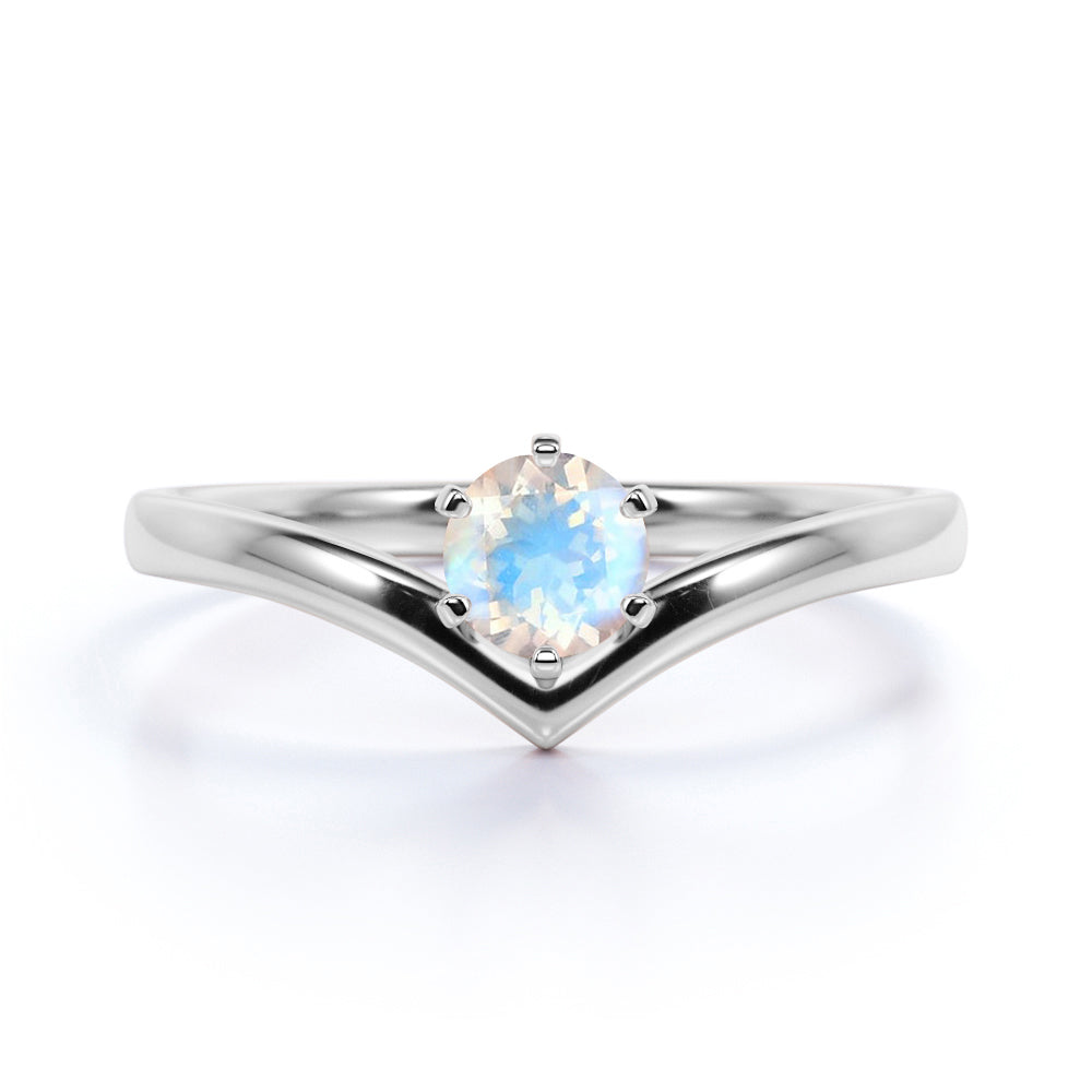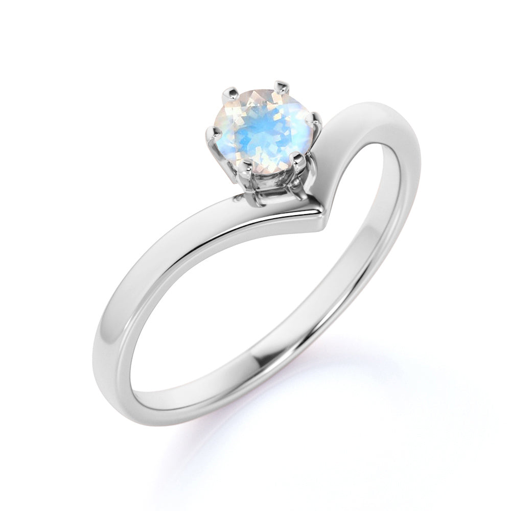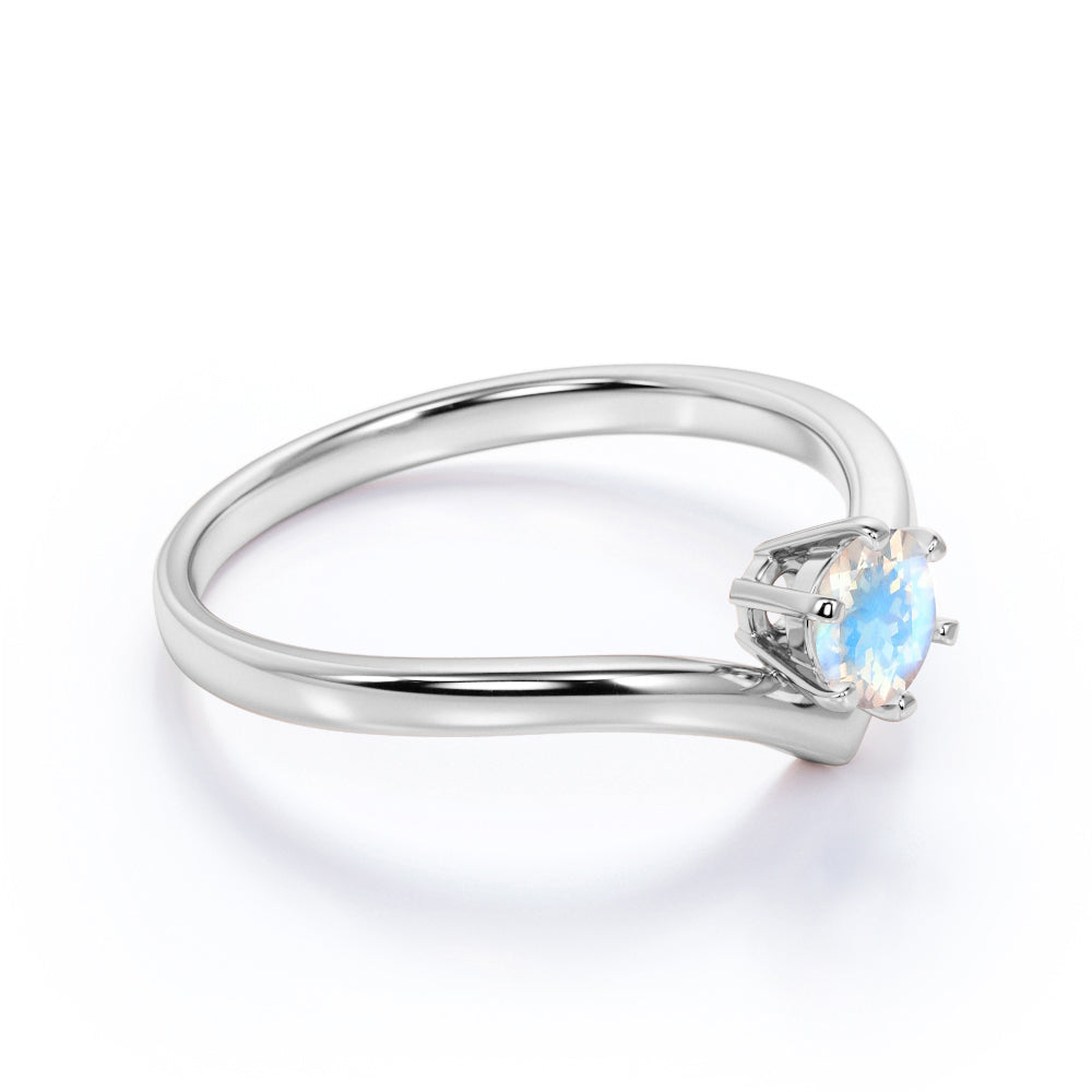 Contoured 1.25 Carat Round Blue Sheen Moonstone and Solitaire Tiara Engagement Ring in White Gold