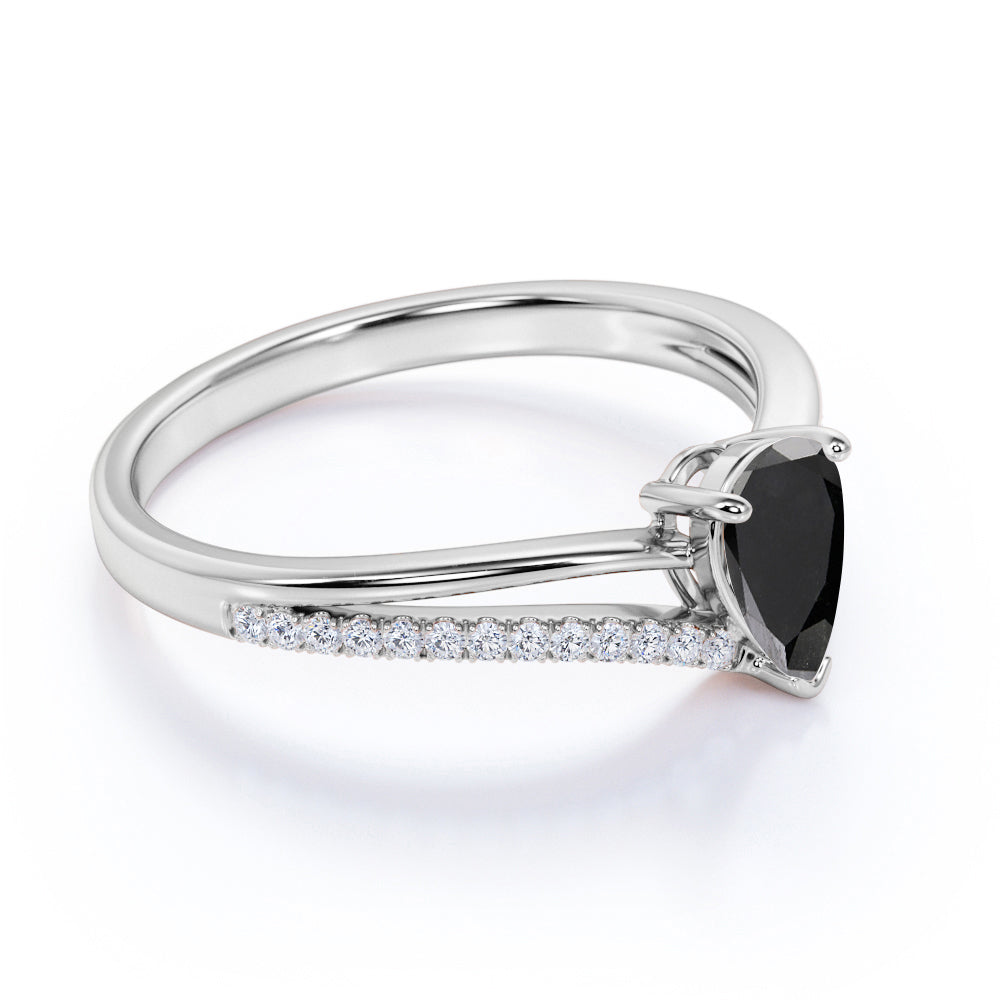 Contoured 1.50 Carat Teardrop Lab Lab Black Diamond and Split Shank Engagement Ring in White Gold