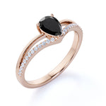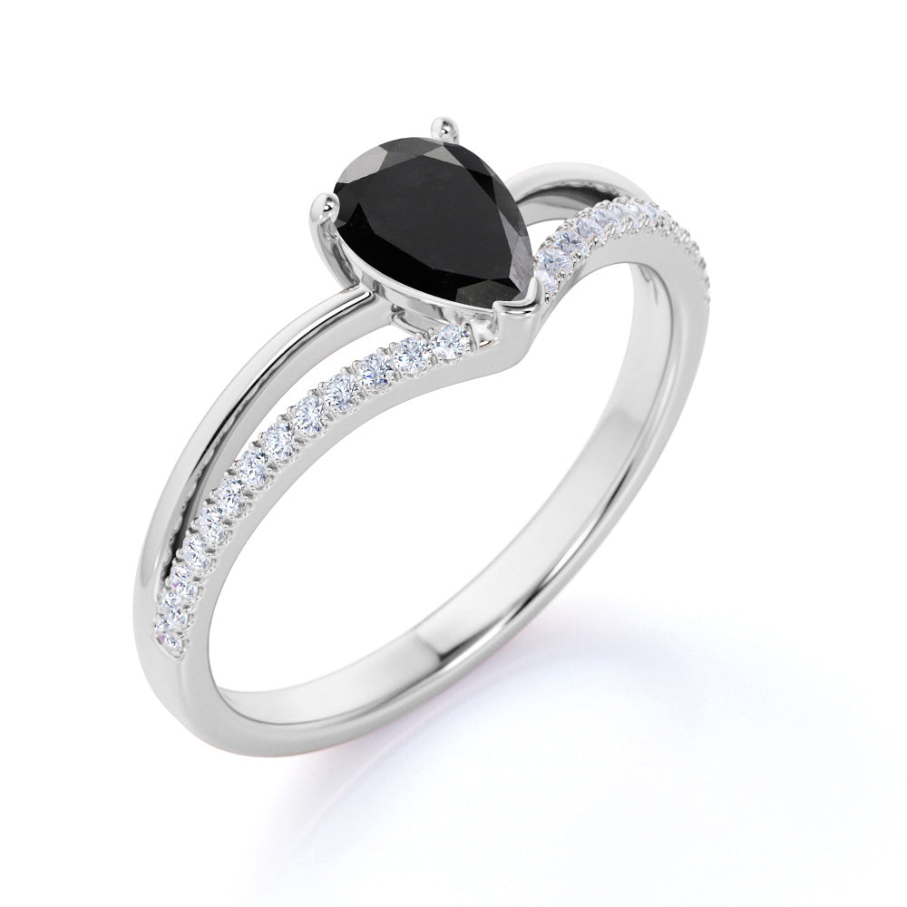 Contoured 1.50 Carat Teardrop Lab Lab Black Diamond and Split Shank Engagement Ring in White Gold
