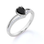 This black diamond is very unique since we can customized this to your preferred style or cut. Either in cushion, square, princess, pear, teardrop, round brilliant, oval, marquise, heart, trilliant, trillion, emerald, radiant, asscher or any other cut that you wish to receive. This black diamond ring is the best gift for any occasions, birthday, proposal ring, friendship ring, statement ring or just a casual ring. This black diamond ring features an approximately 1 carat teardrop cut lab created black diamond, surrounded by .50 carat authentic side diamonds, for a total weight of 1.50 carats.