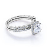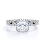 1.5 Carat cushion cut Moissanite and Diamond Halo Vintage Bridal Wedding Ring Set in 10k White Gold