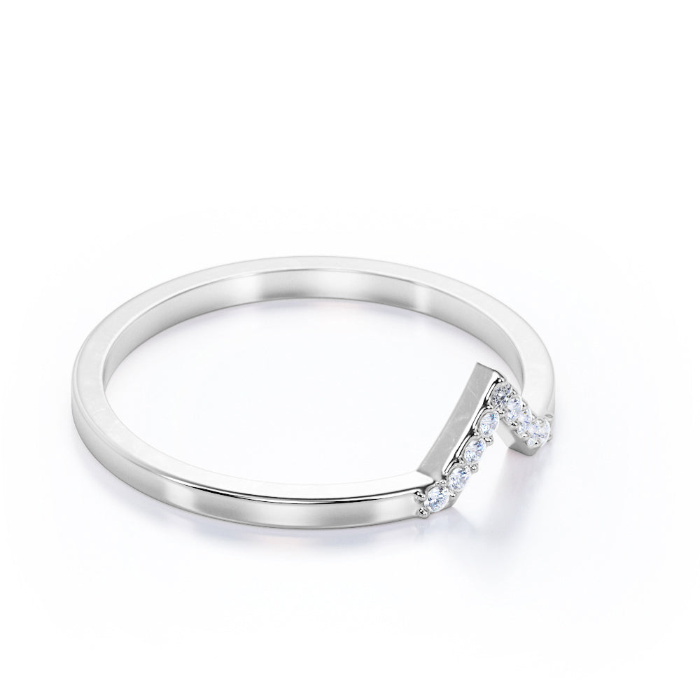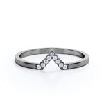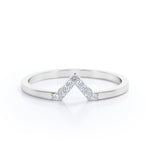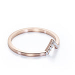 Chevron Flat Band 0.15 TCW Round Shaped Moissanite Pave Accented Wedding Band in Rose Gold