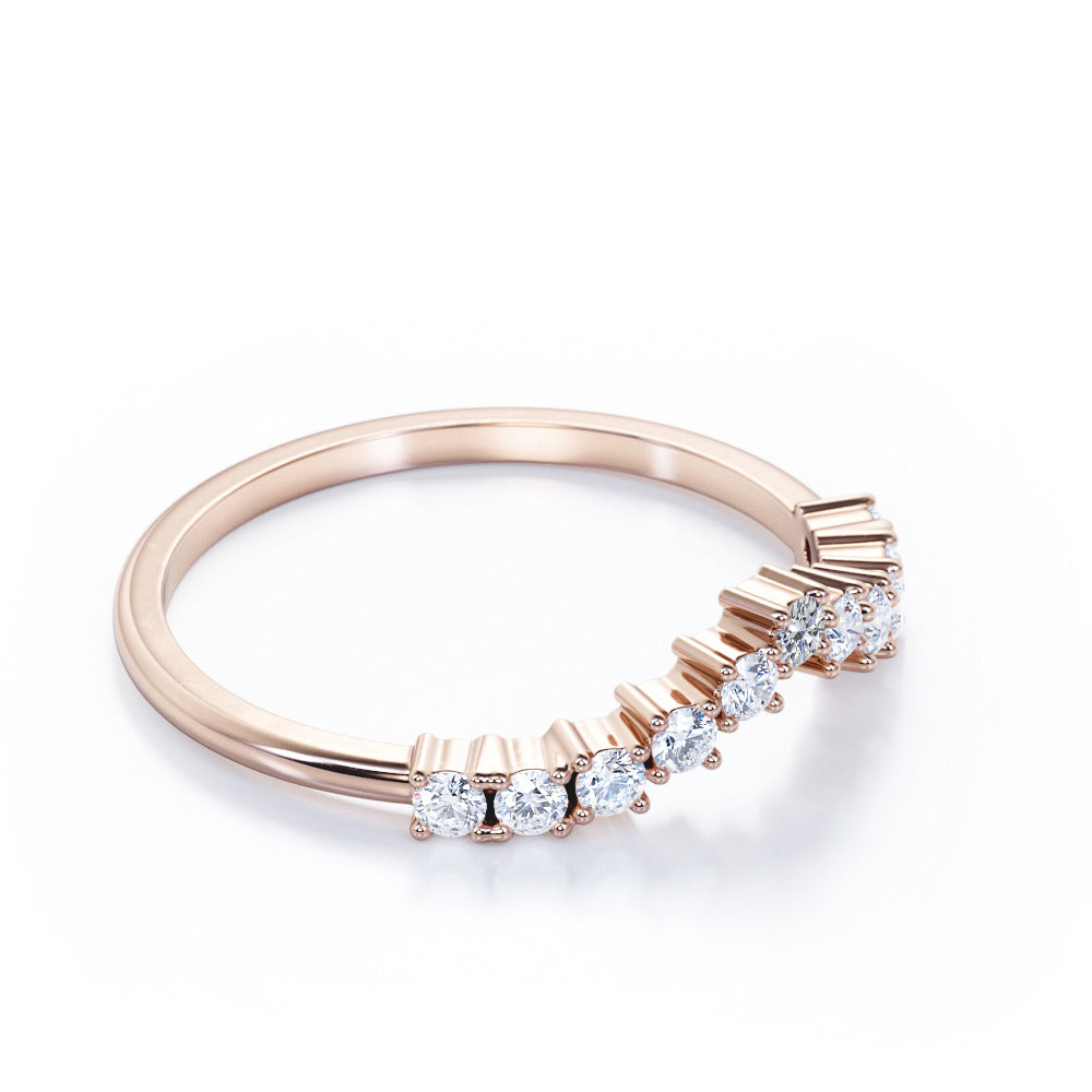 Curved 0.20 TCW Round Cut Pave-Prong Wedding Band