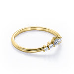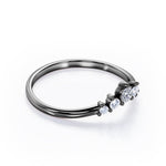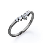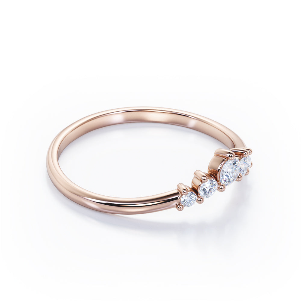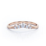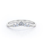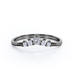 Bring your love to life with this timeless Five-Stone Prong Cluster - 0.15 TCW Round Cut Moissanite - Curved Design Stackable Ring. Handcrafted with care into a wonderful round cut by our lapidary expertise, this exceptional inexpensive Moissanite wedding band consists of total 0.15 carat Moissanite. Distinct and unusual, this inexpensive Moissanite wedding band is ideal for those who wish to express their charisma and uniqueness. With its dazzling beauty, this Moissanite band will bring joy and good energy to its wearer. This inexpensive Moissanite wedding band is a great choice for any woman's jewelry collection. This Moissanite band for women , the birthstone ring for April, symbolically represents love and dedication, is the best gift you can give to your significant other. This wedding band can be customized in 18K white, rose, yellow, or black gold over silver, or in 10K, 14K, and 18K gold, based on your preference.