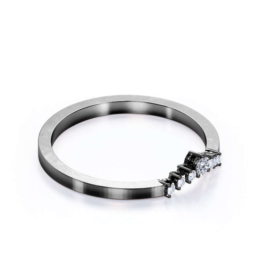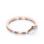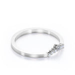 With this F0.10 TCW 7-Stone Curved Prong Cluster Wedding Band, you can make your proposal day unforgettable. Hand-cut with deftness into a lovely shape round cut by our lapidary expertise, this exceptional gold Moissanite wedding band comprises total 0.10 carat Moissanite. For those looking for something a little out of the ordinary, this Moissanite wedding band for women is ideal for those who wish to express their charisma and uniqueness. This Moissanite band will accentuate any outfit the wearer chooses to put on. this Moissanite wedding band is a great choice for any woman's jewelry collection. Our anniversary Moissanite wedding band a great choice. This Moissanite band for women can be customized to your own choice of metal colors: rose gold, white gold, black gold, or yellow gold. Let's show her how much you care by giving her this Moissanite wedding band, and she will never regret it.