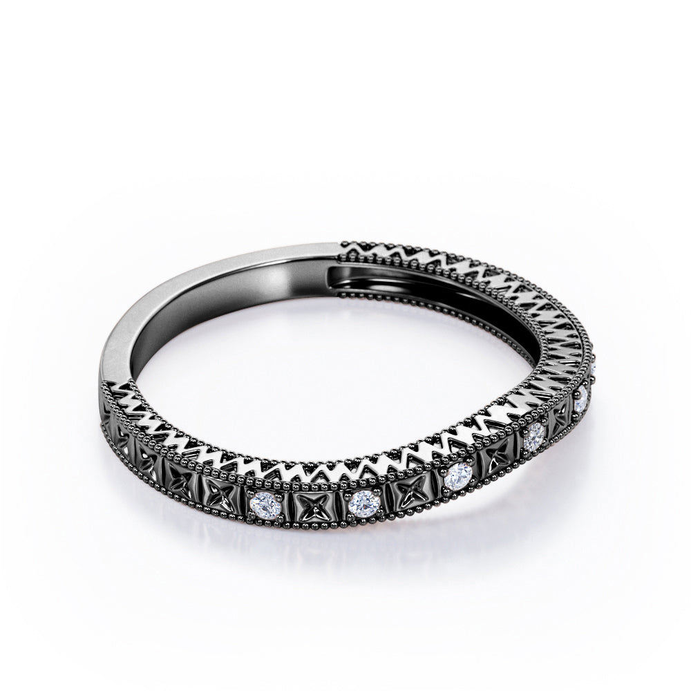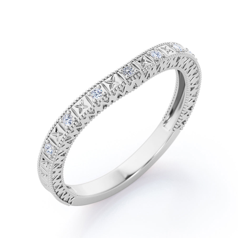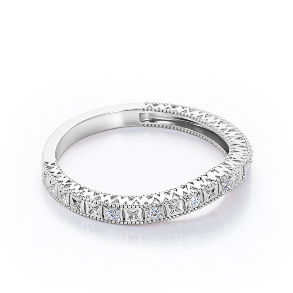 Vintage Filigree 0.10 TCW Round Cut Wedding Band