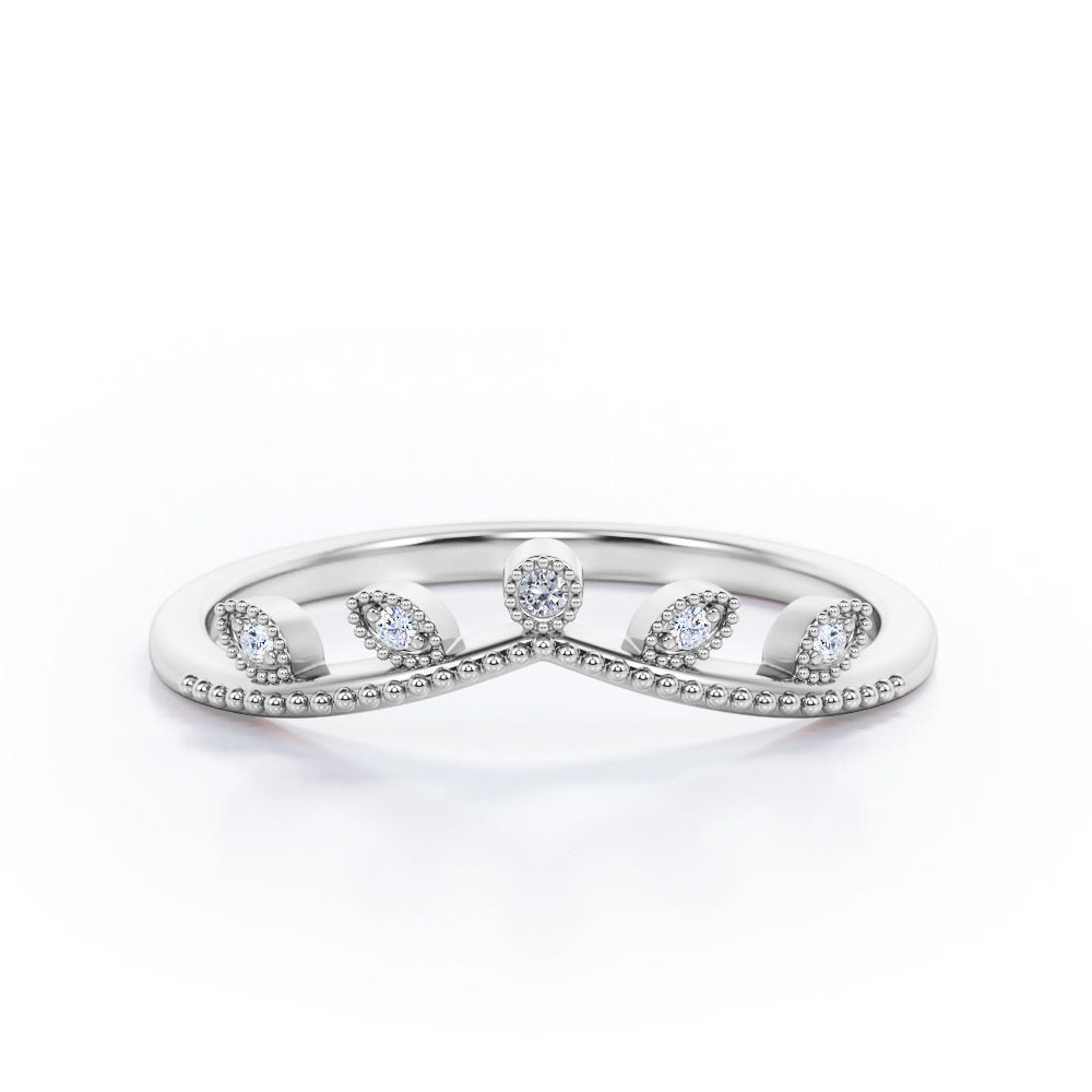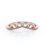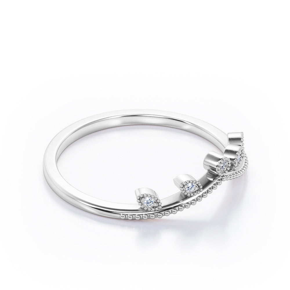 Milgrain Edged 0.10 Ct Round Cut Curved Wedding Band