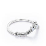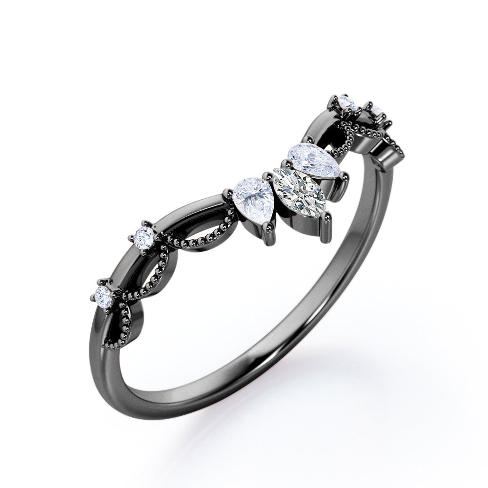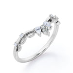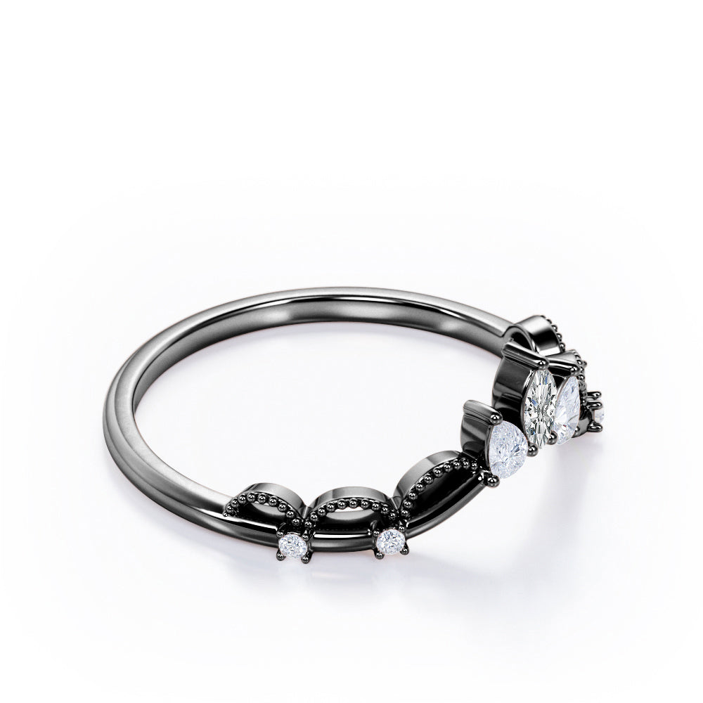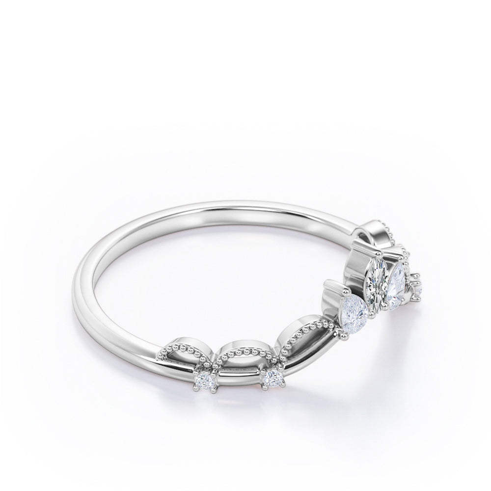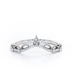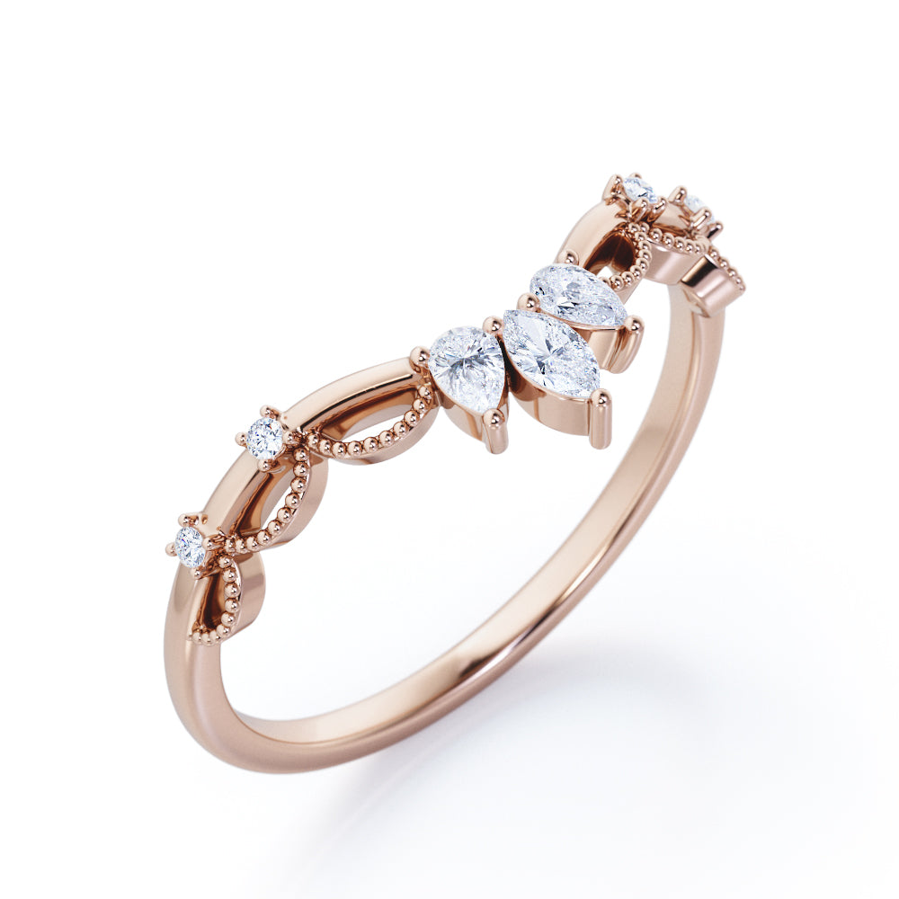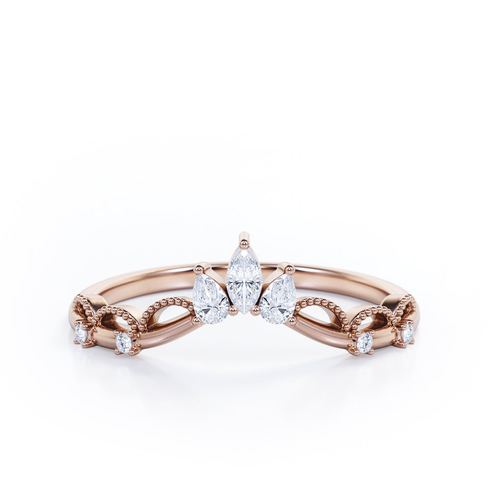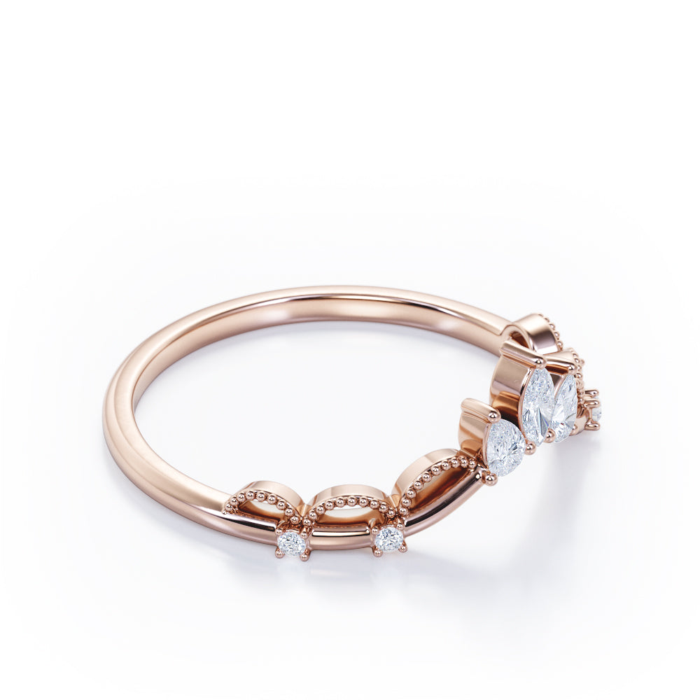 Princess Crown Design 0.20 TCW Marquise-Teardrop-Round Moissanite Milgrain Curved Wedding Band in Rose Gold