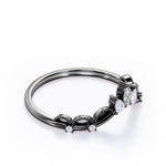 | With this Princess Crown Design 0.20 TCW Marquise-Teardrop-Round Moissanite Milgrain Curved Wedding Band in Rose Gold, you can make your proposal day unforgettable. Handcrafted with care into a wonderful marquise, pear, and round cut by our most talented jewelers, this exceptional Moissanite band for women integrates total 0.20 carat Moissanite on solid black gold. Distinct and unusual, this gold Moissanite band is ideal for those who wish to express their charisma and uniqueness. This women's Moissanite wedding band will accentuate any outfit the wearer chooses to put on. Beautiful and affordable, this women's Moissanite wedding band is stunning and inexpensive, thanks to its reasonable price. Our affordable Moissanite wedding band , the birthstone ring for April, symbolically represents love and dedication, is the best gift you can give to your significant other. This women's Moissanite band can be customized to your own choice of metal colors: white gold, rose gold, black gold, or yellow gold. Let's show her how much you care by giving her this Moissanite wedding band. |