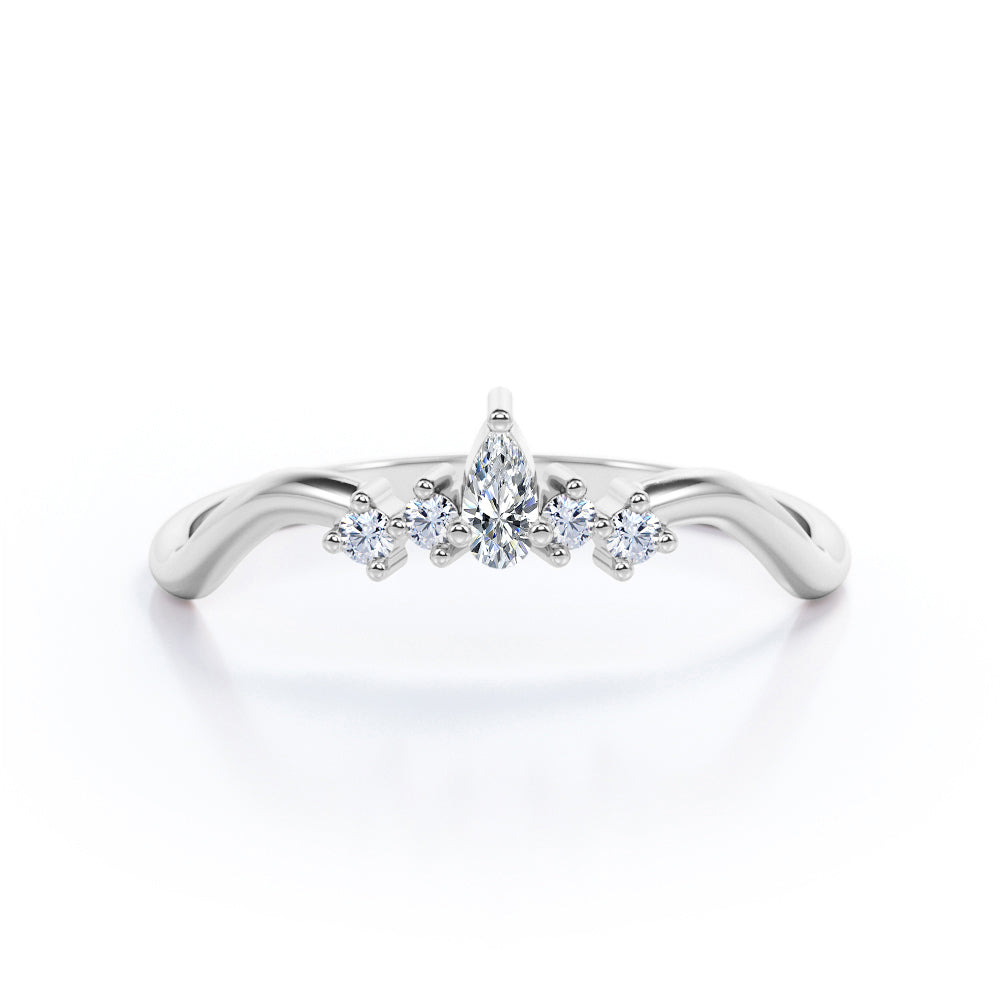 Prong Cluster 0.10 TCW Pear and Round Cut Moissanite Curved Wedding Band in White Gold