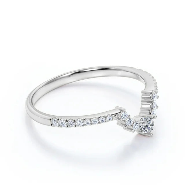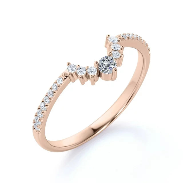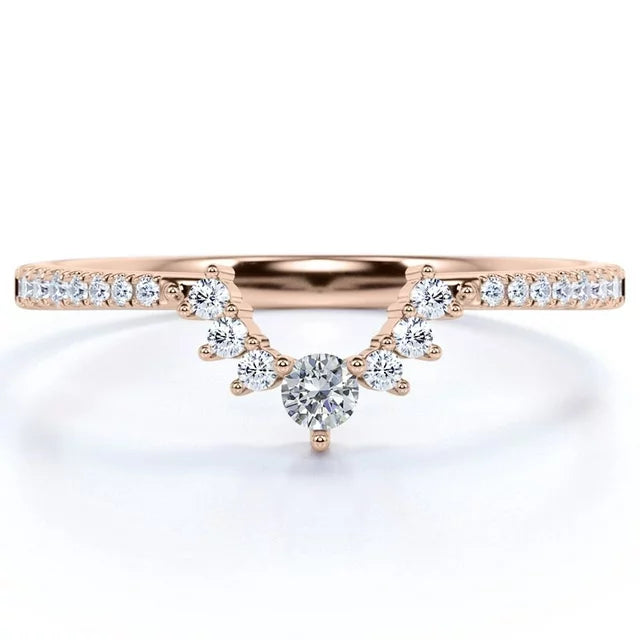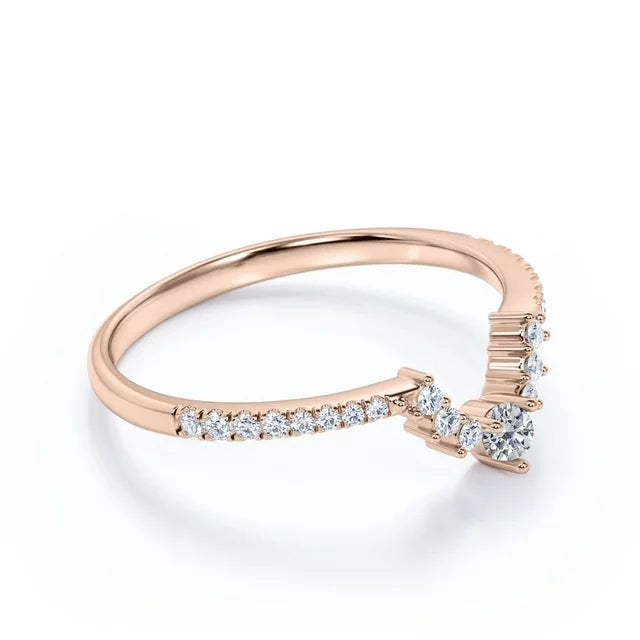 Prong Pave - 0.25 TCW Round Shaped Diamond- Chevron Wedding Band - Rose Gold
